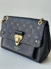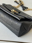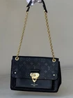 The Louis Vuitton Empreinte Vavin PM Black Shoulder Bag is a luxurious designer handbag perfect for various occasions, from casual outings to formal events. Made of black leather with the iconic monogram pattern, this rectangular-shaped bag features a magnetic closure and a gold shoulder strap handle. The exterior and interior are both black, with the exterior showcasing the signature Louis Vuitton Empreinte finish. This stylish and elegant bag is part of the Louis Vuitton Vavin collection, embodying sophistication and high-end fashion. Condition: excellent, shape relaxed. Scratches and discoloration at hardware, snap and buckle.Marking and dust residue inside.