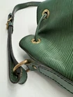 The Louis Vuitton Epi Petit Noe Shoulder Bag in green is a stylish and luxurious accessory for women. Made in France from Epi leather, this shoulder bag features a compact size with dimensions of 10.6 inches in height, 7.5 inches in depth, and 9.8 inches in length. The bag comes with a sturdy strap that can be worn at a drop of 10.6-12.2 inches, making it convenient for everyday use. She is preowned so the strap does show some signs of wear and tiny cracks but is still sturdy. The green epi leather does have some areas of wear but nothing to crazy. Normal vintage bag smell. Non smoking. Take a look at all photos and ask any questions.