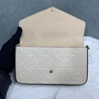 The Louis Vuitton Felicie Pochette Monogram Empreinte Leather Cream GHW Chain is a stylish and luxurious shoulder bag designed for women. Made from high-quality leather with a monogram pattern and gold hardware, this rectangle-shaped bag exudes sophistication and elegance. The snap closure ensures the safety of your belongings, while the gold-plated hardware adds a touch of luxury. Perfect for everyday use or special occasions, this designer bag from Louis Vuitton is a timeless piece that will elevate any outfit.