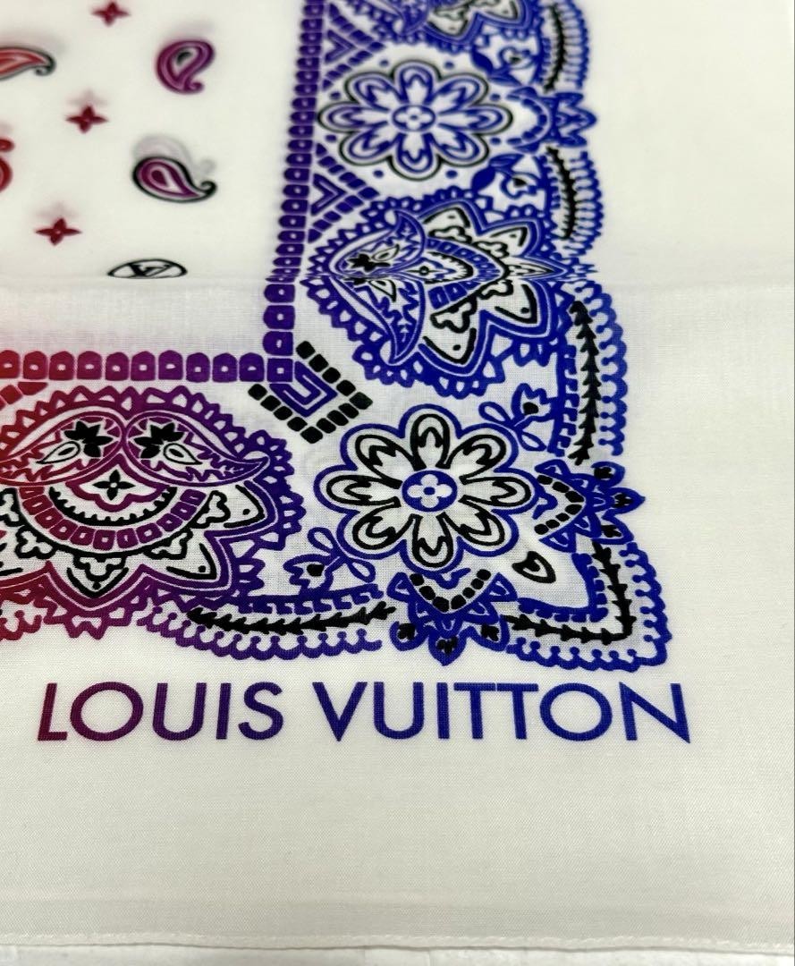 Louis Vuitton Fragment Bandana Scarf Multicolor Cotton Excellent Used Women No Key Features This is a Louis Vuitton Fragment bandana scarf featuring a charming multi-color paisley pattern. Made of 100% cotton, it measures approximately 57cm x 57cm. Please note that the outer box has some stains, as shown in the images. The item has been previously owned, so minor signs of use may be present. No returns or cancellations are accepted after purchase, and buyers must contact within 12 hours. Perfect for fashion accessories or collection. Item Specifics: C:Type: Scarf C:Color: Multi-color C:Department: Women C:Material: Cotton C:Features: Paisley Pattern C:Style: Bandana C:Pattern: Paisley C:Theme: Fashion C:Fabric Type: Woven C:Country/Region of Manufacture: Japan C:Season: All Seasons C:Vintage: No C:Handmade: No C:Personalize: No C:Garment Specifications Brand LOUIS VUITTON Country Japan Type Scarf Department Women Product Description Item Title Louis Vuitton Fragment Bandana Scarf Payment Supports managed payments Please pay within 5 days after auction is finished. About Us We are located in Japan. It's our pleasure to make you happy by proposing our recommend item. If you have any questions or request about items, please feel free to ask us. International Buyers - Please Note: -Import duties, taxes, and charges are not included in the item price or shipping charges. These charges are the buyer's responsibility. -Please check with your country's customs office to determine what these additional costs will be prior to bidding/buying. -These charges are normally collected by the delivering freight (shipping) company or when you pick the item up - do not confuse them for additional shipping charges. -We do not mark merchandise values below value or mark items as - gifts - The US and International government regulations prohibit such behavior. Thank you for your understanding.