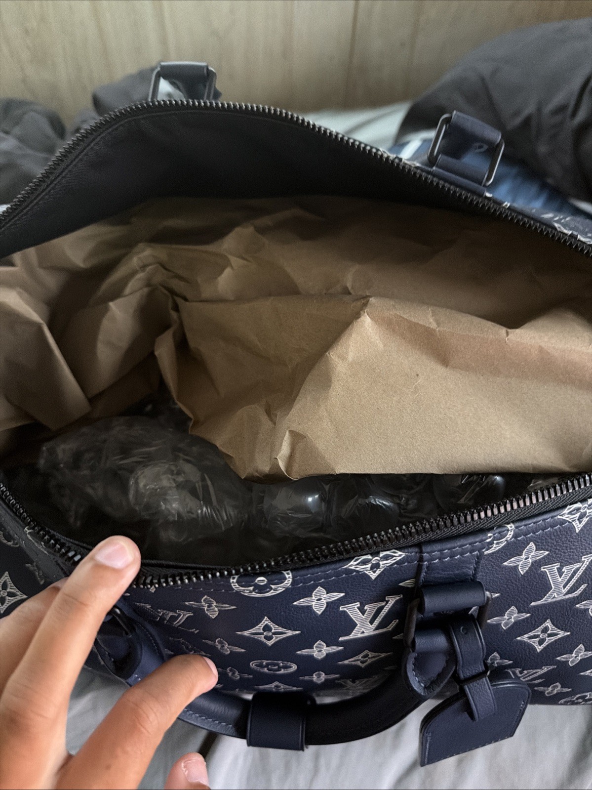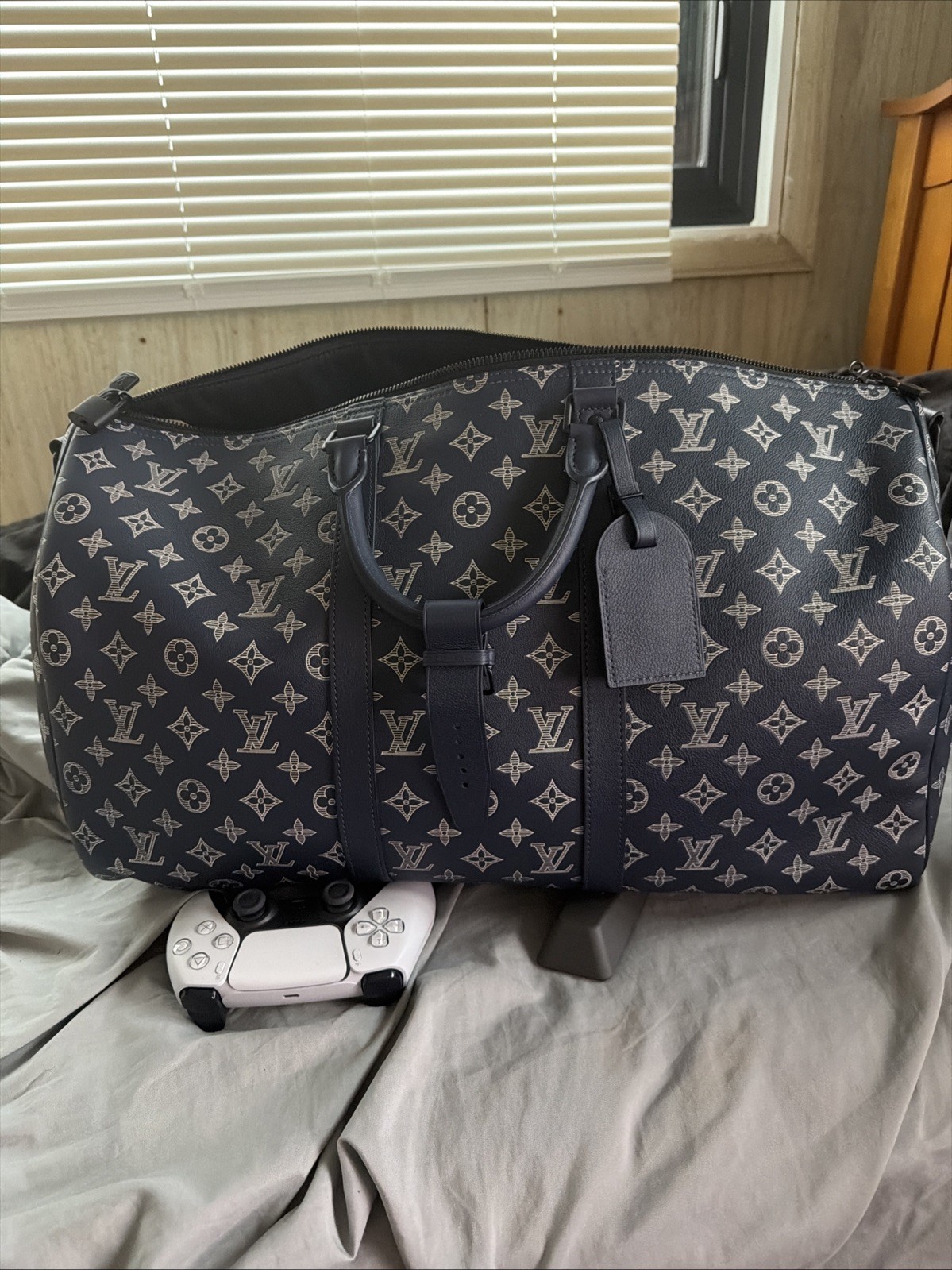 The Louis Vuitton Keepall Bandoulière 50 Canvas/Leather Duffle Bag in Ink Blue is a stylish and luxurious travel bag designed for men. Made of high-quality leather and durable canvas fabric, this duffle bag features a zip closure, adjustable strap, and convenient handle/strap material, making it both practical and fashionable. With the iconic Louis Vuitton branding and designer theme, this bag is sure to make a statement whether you're traveling for business or leisure. Perfect for the discerning individual looking for a blend of sophistication and functionality in their luggage. MODEL M24953 COMES WITH DUST BAG AND ORGINAL BOX 📦