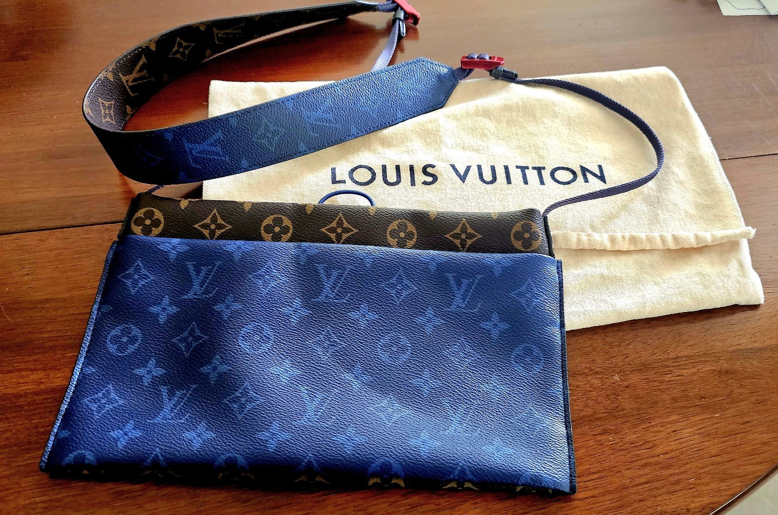 From Louis Vuitton's S/S 2018 collection, this fabulous crossbody bag was created by Kim Jones, the sporty collection draws inspiration from travel in general, as well as exotic islands, with its bright colors, bold prints and eye-catching designs. The bag has a wide coated canvas strap with classic brown monogram pattern as well as a blue side. The interior is perfect for carrying essentials. You'll love this limited piece from LV! The classic Monogram Canvas has been Louis Vuitton's trademark design since it was first introduced in 1896. The graphic symbols, including the quatrefoils and flowers, as well as the LV Monogram were used to prevent counterfeiting in the early days when it was first patented. Made of coated canvas, the Monogram's traditional look is also endured by its durability. The exterior coated canvas remains clean and beautiful throughout. The hardware is bright and shiny. The interior is clean and remains in excellent condition. Details Overall Condition: Like new Exterior Condition: Like new Interior Condition: Like new Designer: Louis Vuitton Material: Monogram coated canvas with leather trim Includes: Dust bag Origin: Italy Production Year: 2018 Date/Authenticity Code: NZ1148 Measurements: 11.25" L x 6.75" H Handles: Wide coated canvas strap Handle Drop: 18" Closure/Opening: Magnetic snap Interior Lining: Fine textile lining Hardware: Red