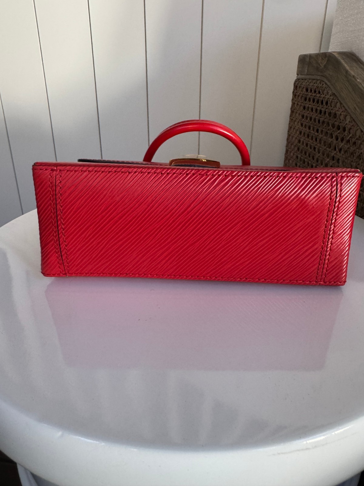 The Louis Vuitton Locky Handbag Epi Leather BB is a stylish and luxurious crossbody bag designed for women. Made from red leather with a Louis Vuitton Epi finish, this handbag features a red handle/strap and lining, adding a bold pop of color to the classic design. The Locky model is part of the Louis Vuitton Locky BB product line, offering both functionality and fashion in one sleek package. Ideal for fashion-forward women who appreciate high-quality craftsmanship and timeless style.