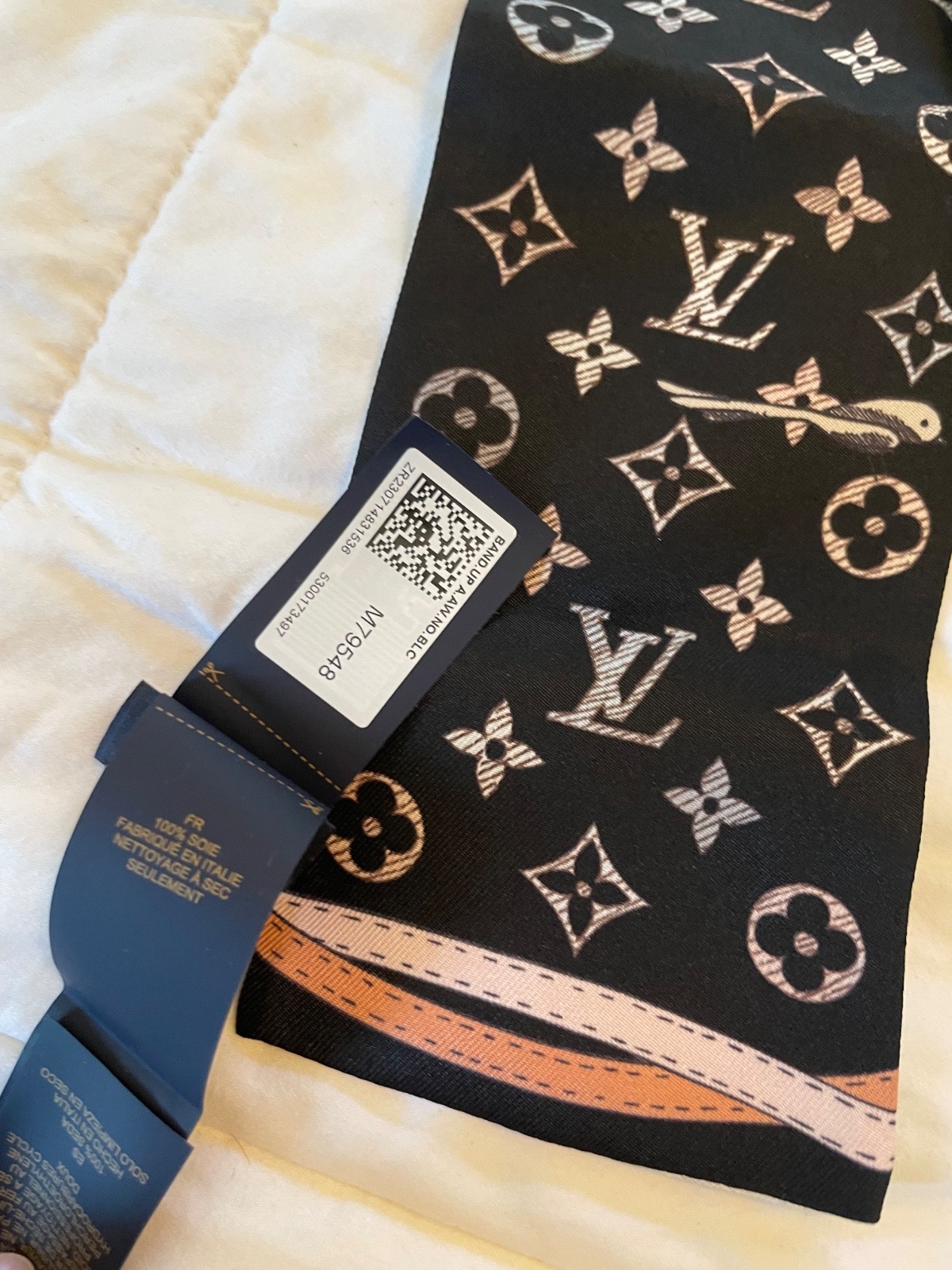 Authentic Louis Vuitton Vivienne Up And Away, Noir Blanc Silk Bandeau, brand new with tag attached. The gift box, dust bag and gift ribbon are included. We are a smoke free home. Please ask all questions prior to purchase. I do not represent nor work for Louis Vuitton in any way just an avid admirer of the luxury brand.