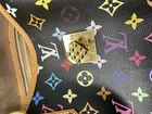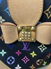 The Louis Vuitton Monogram Black Multicolor Annie MM Shoulder Bag is a stylish and luxurious tote bag designed for women. It features the iconic LV monogram pattern in black and gold, with a turn lock closure and beige leather handles. This medium-sized bag is crafted from leather and has a black leather and chain strap, making it a versatile accessory for any outfit. With its sophisticated design and high-quality construction, this Louis Vuitton bag is a must-have for any fashion-forward individual looking to add a touch of elegance to their wardrobe.