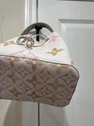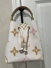 The Louis Vuitton Monogram Giant By The Pool Neonoe BB Beige 2Way Handbag is a small top handle bag made of leather with a beige exterior and gold hardware. It features a monogram pattern, a fabric lining, and inner pockets. This stylish bag from the Louis Vuitton NéoNoé collection is designed in France and comes with a detachable strap and original dust bag, making it a luxurious accessory for women. The coated finish adds a touch of sophistication to this chic and trendy handbag. It’s 💯 authentic and doesn’t have any sign of use. Come with dust bag. No carton.