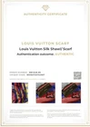 This Louis Vuitton shawl is absolutely stunning—the vibrant colors and soft silk feel luxurious while the geometric design adds a chic touch. It’s so versatile, dressing up any outfit instantly. Perfect condition, and the COA is a great bonus. A must-have for any fashion lover!