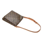 Louis Vuitton Monogram Musette Salsa Crossbody Bag PVC Leather Brown W 8.7 x H 9.8 x D 1.2 inches Female Used Key Features Louis Vuitton Monogram Musette Salsa Short Bag - AB Grade This stylish women's Louis Vuitton Musette Salsa bag features the iconic monogram pattern on durable PVC leather. Measuring approximately 8.66 inches (22cm) wide, 9.84 inches (25cm) high, and 1.18 inches (3cm) deep, with a handle drop of about 13 inches (33cm). The bag has a magnetic closure, one open interior pocket, and no accessories. Condition: AB rank with light signs of wear including slight stains, discoloration, scuffs, and minor cracks on the exterior leather and piping. Handle shows some wear and fading. Interior has slight dirt. Overall, a beautiful vintage piece with minor signs of use. Item Specifics: - Brand: Louis Vuitton - Model: M51258 - Series: Musette Salsa - Material: PVC Leather - Color: Brown - Size: W 8.66 in x H 9 Specifications Brand Louis Vuitton Country Japan Product Description Louis Vuitton Monogram Musette Salsa Short Crossbody Shoulder Bag M51258 Brown P Description Item Condition: Used