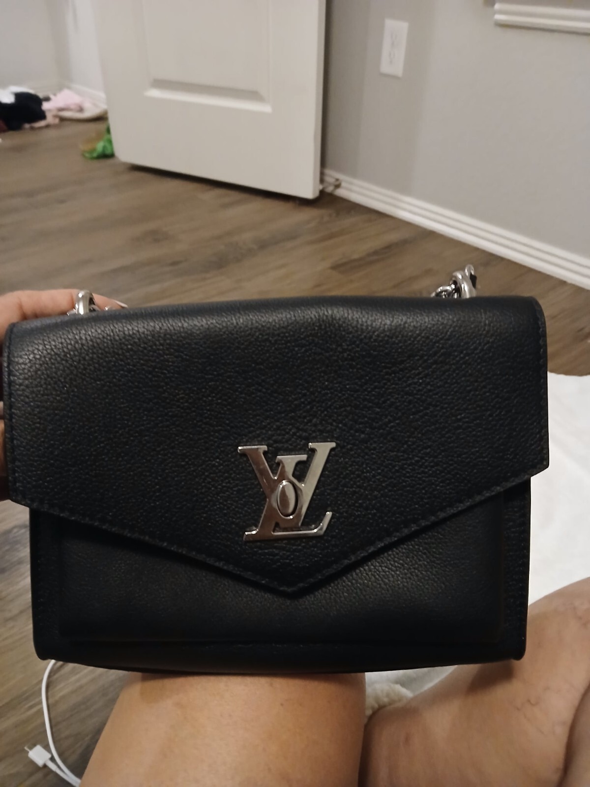 Designer: LOUIS VUITTON Series: Mylockme Style: Pouch/ Crossbody Bag Material: Leather Color: Black Date Code: Microchip Made: France Measurements: L 9" D 1" H 6" 100% authentic shipping from the USA purchased in the USA with receipt. No import duties to worry about for US buyers. This is soft calfskin My Lockme Pochette is crafted of supple calfskin leather in black. The shoulder bag features a long removable silver chain shoulder strap and a silver LV turn-lock on the front flap. This opens to a black microfiber interior with a zipper compartment, a patch pocket, and card slots. Enjoy this bag with room for all the essentials, from Louis Vuitton! This is the 9 inch by 6 inch slim version not the mini. It is out of production as of 2022. I don't think they make a version of this bag with removable chain any longer and I believe you can only find them in the fatter school bag style now. This bag was purchased a Macy's herald Square, New York August of 2021 and includes the receipt. I looked for a date code but I believe this was manufactured with the microchip as it was made post 2020. The bag is in great shape with the only notable wear a few scratches on the front metal clasp which as we all know are unavoidable the as soon as you start using your bag and open/close it. The leather has only one very light scuff on the lower left corner. There is no wear of note inside the pockets. There may be some microscopic lint or sparkly flecks but other than that it's nearly perfect. Absolutely no smell or stains or anything like that. It's really in great clean shape, was barely worn and kept clean and safe. Unfortunately the box has water stains on the bottom front and back. I will ship it out fast. This is covered by eBay's authenticity program so please allow for time for them to complete the inspection process which can add up to 10 days to the travel time total.