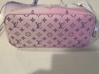 The Louis Vuitton Neverfull Tote MM in Sunrise Pastel Leather is a stylish and elegant tote bag designed for women. Made with high-quality leather and featuring the iconic monogram pattern, this bag exudes luxury and sophistication. With gold hardware accents, a coated finish, and a canvas lining, this limited edition tote is perfect for everyday use or special occasions. The multicolor exterior and leather handle/strap add a touch of versatility to this chic and timeless design. See photos for areas of wear. There is also some staining on the inside as shown in photos.