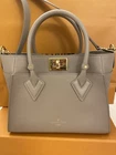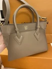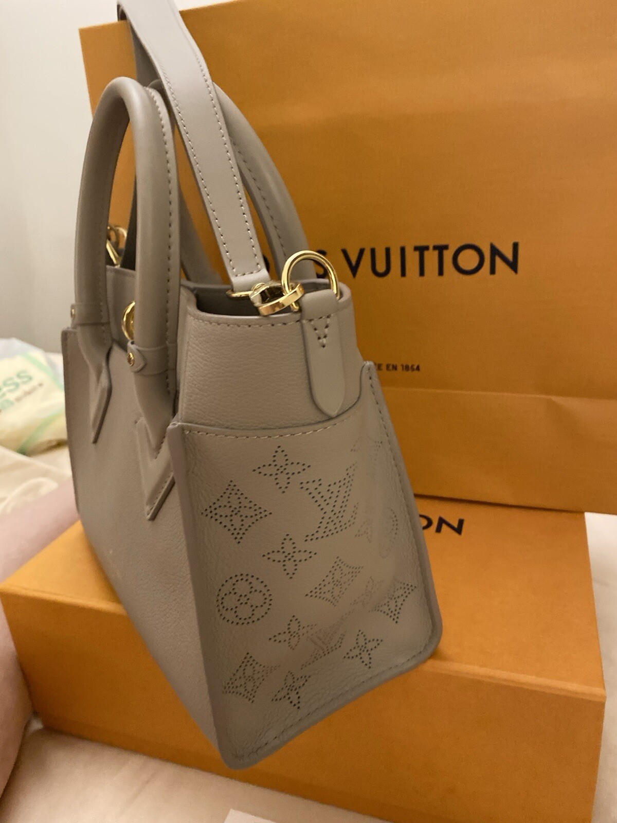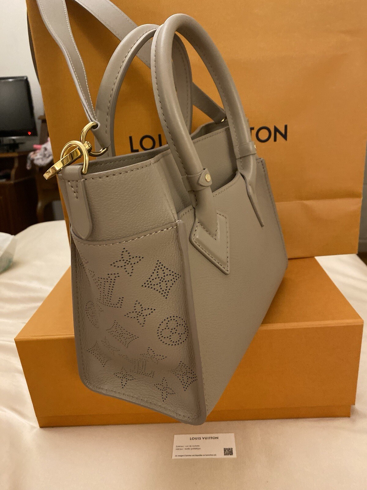 Louis Vuitton On My Side PM leather bag The On My Side PM is a compact tote bag made from soft calf leather with side panels in classic Monogram canvas. This adorable everyday bag boasts a wide removable strap for on-trend shoulder and cross-body wear as well as two top handles for hand and elbow carry. Two large outside pockets give easy access to essentials. 9.8 x 7.9 x 4.7 inches (Length x Height x Width) Gray Monogram coated canvas and calf leather Cowhide-leather trim Microfiber lining Gold-color hardware Closure system with a hook 2 outside pockets Zipped pocket Flat pocket 4 protective metal bottom studs Strap:Removable, not adjustable Strap drop:20.1 inches Handle:Double