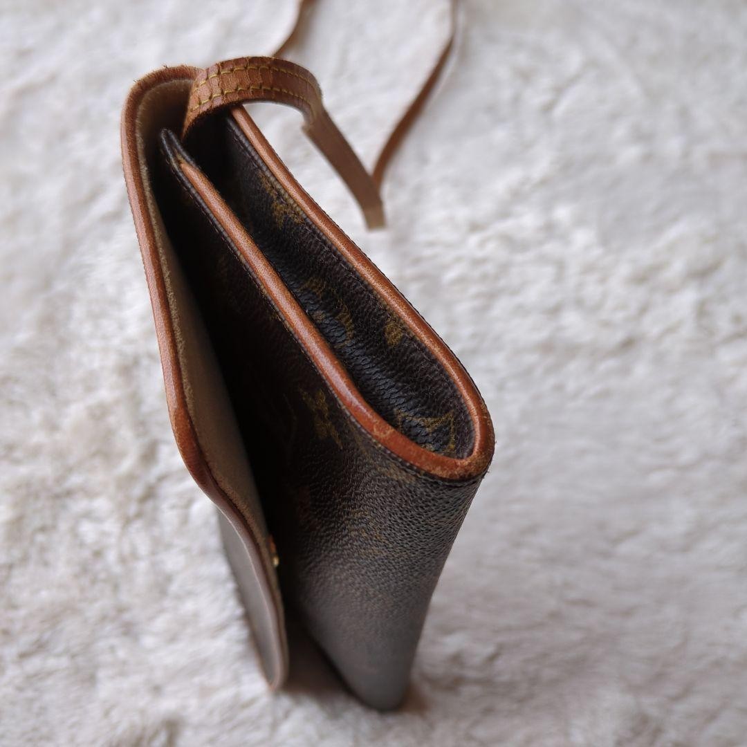 Louis Vuitton pochette in monogram pattern leather. Brown color. Features a 2-way long strap for shoulder and pochette use. There is slight peeling due to scuffing on the corners, though not very noticeable. I promise fast shipping via FedEx or DHL as soon as possible! Import duties, taxes and charges are not included in the item price or shipping charges. These charges are the buyer’s responsibility. These charges are normally collected by the delivering freight (shipping) company or when you pick the item up - do not confuse them for additional shipping charges.