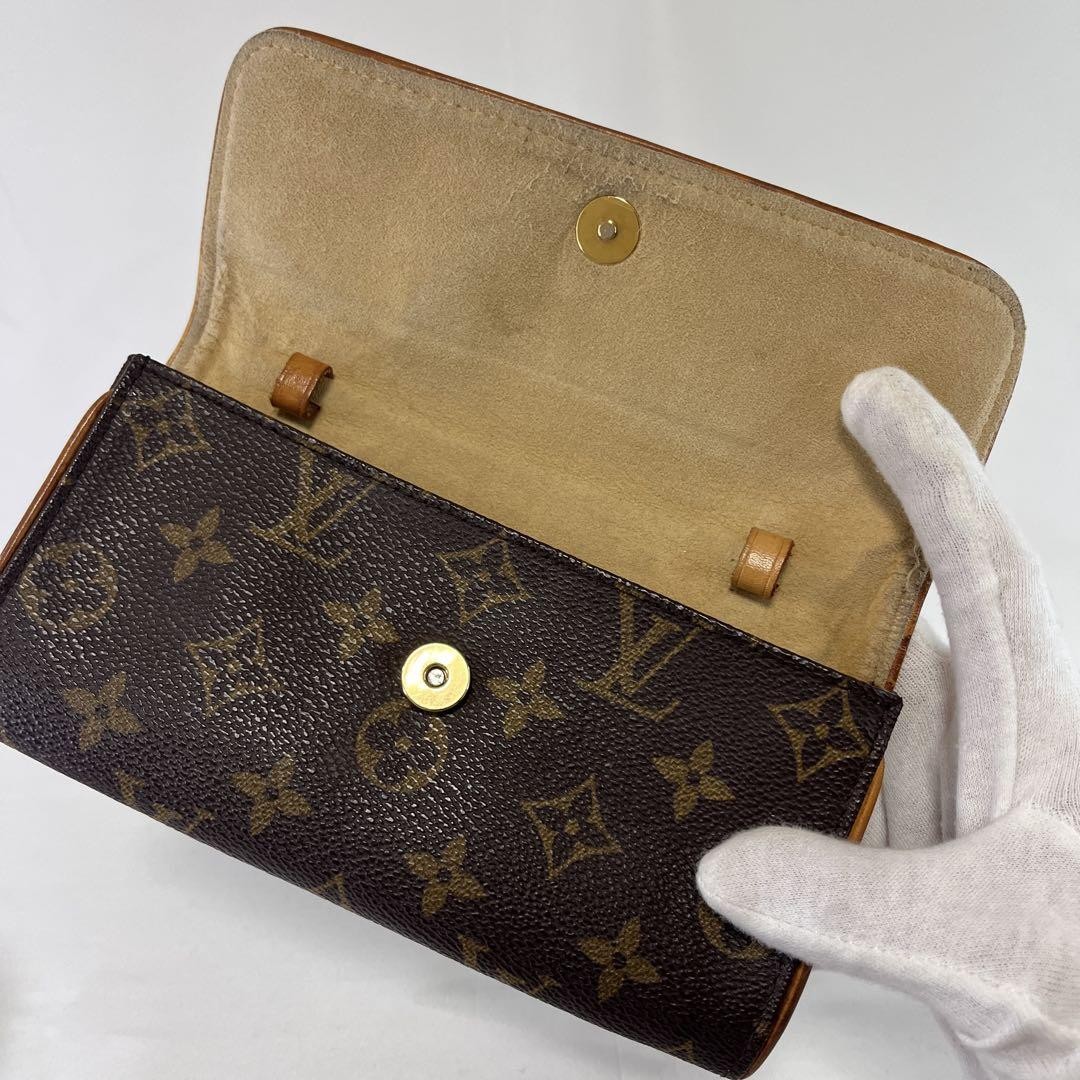 Louis Vuitton Pochette Twin Shoulder Bag PM Brown Leather