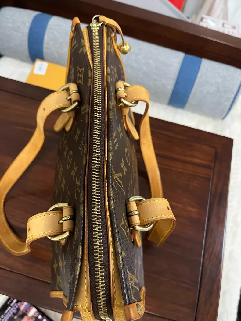 The Louis Vuitton Popincourt Tote Monogram Canvas Shoulder Bag is a luxury designer handbag featuring the iconic monogram pattern on canvas with gold hardware accents. This medium-sized rectangular shoulder bag has a zip closure, a convenient inner pocket, and a comfortable leather handle strap with a drop of 8.6 inches. The bag exudes a stylish and fashionable look with a brown exterior and gold-plated hardware, perfect for women who appreciate high-end fashion and sophistication. The Louis Vuitton Popincourt Tote Monogram Canvas Shoulder Bag is a must-have accessory for those seeking a touch of elegance and luxury in their daily essentials.