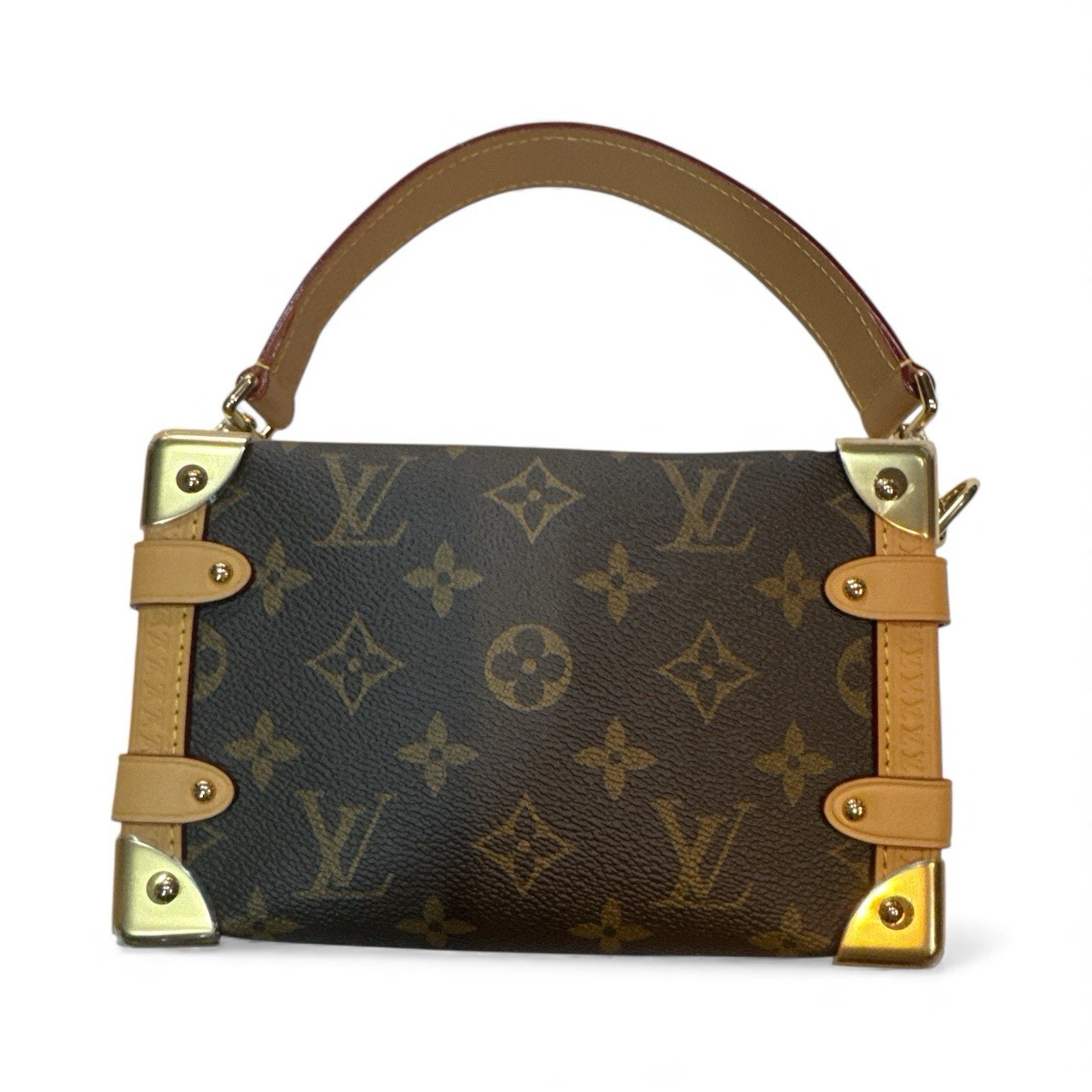 Authentic Louis Vuitton Side Trunk in Monogram Canvas. This piece is in pristine condition and comes as a Full Set: • Bag • Brand New LV Dust Bag • Original LV Box • Unused Adjustable Strap • Bright hardware with only micro storage scratches, stickers are intact • No corner wear, no rubbing, no odor • Interior is spotless The Side Trunk is one of LV’s most iconic Petite-Malle–inspired designs and is currently hard to find in boutiques. Measurements: Approx. 7.5” dW × 4.9”H × 3”D