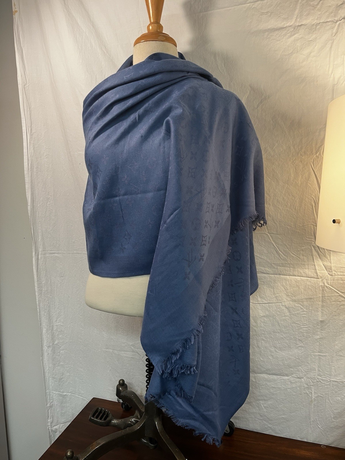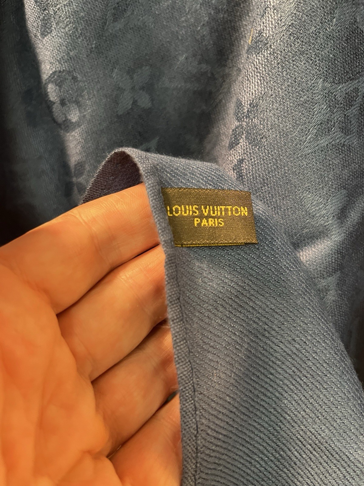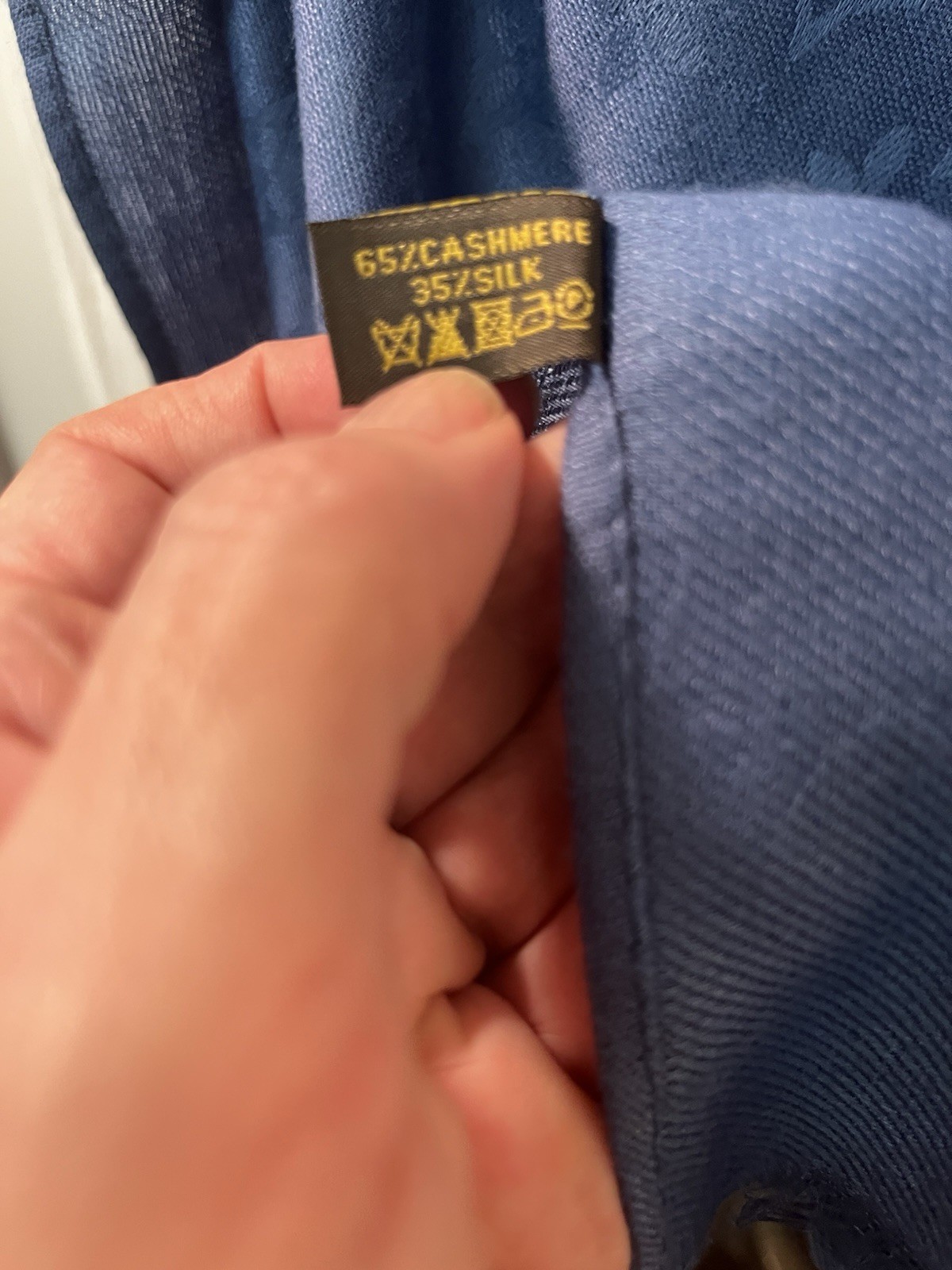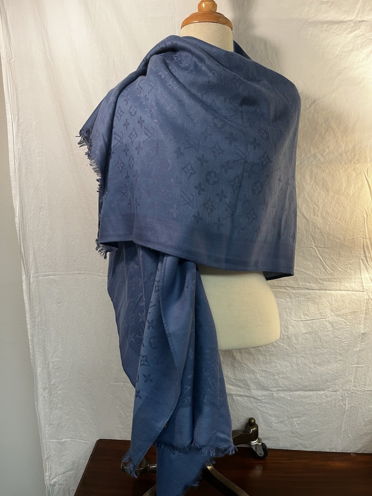 See photos. This scarf has no holes, stains or odors.