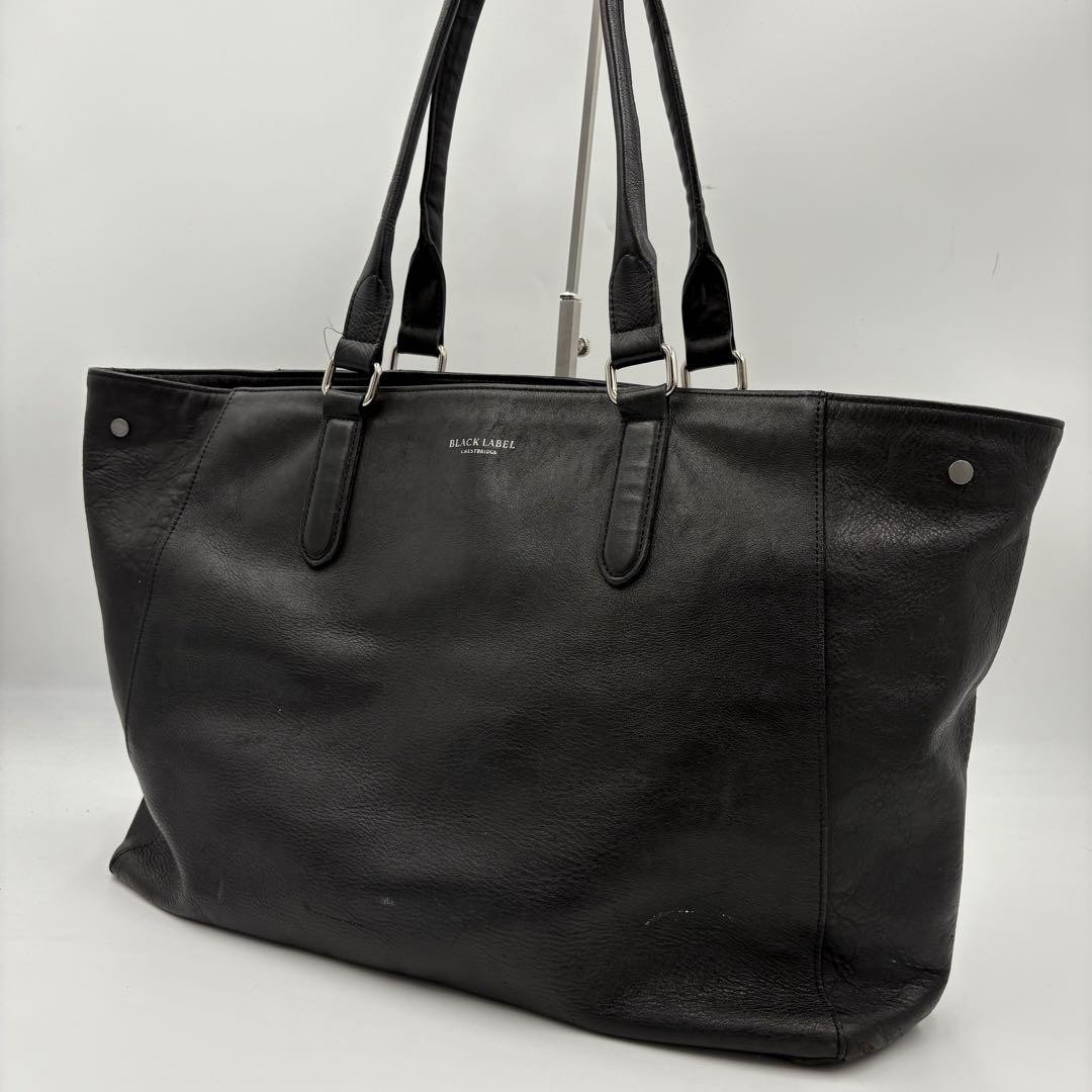 $ 156.29"Black Label Crestbridge Leather Tote Shoulder Bag Nova Check Black A4 Size" /U