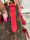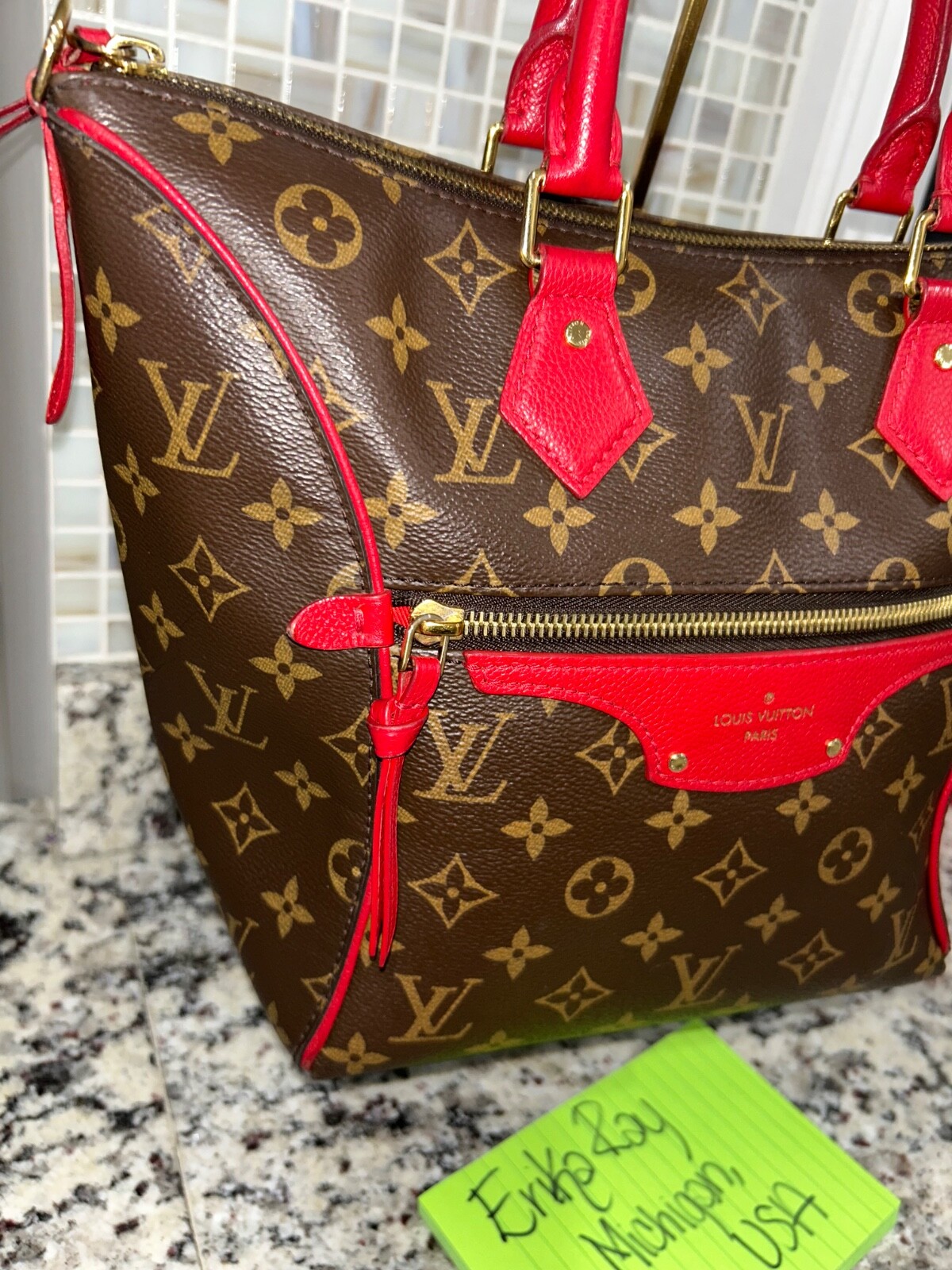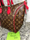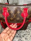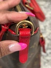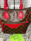 Absolutely stunning Louis Vuitton Tournelle tote in vibrant red leather—flawless condition with no peeling or stickiness! The gold hardware shines, zippers glide smoothly, and the interior is clean except for minor pen marks. Handles are firm, no vachetta to worry about, and the dustbag is included. Love the two spotless interior pockets! A few minor rubs and tarnish on the feet, but overall a gorgeous, well-maintained bag. Perfect for a bold, stylish statement!