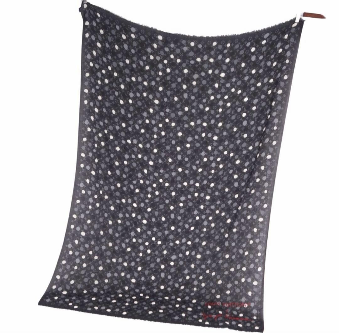 Louis Vuitton Yayoi Kusama 2023 Stole Painted Dot Shawl Black unused