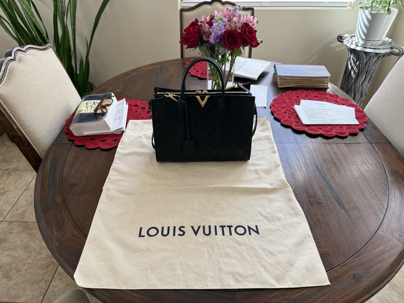 Very Slightly Used-Excellent Condition-Like new condition LOUIS VUITTON Very Tote MM Handbag Shoulder Bag Noir Black M42886 (SKU: GZllab83)