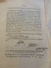 Louis XVI / Duport - Loi, Constitution française : donnée à Paris, le 14 septembre 1791. - 1791 Loi, Constitution française : donnée à Paris, le 14 septembre 1791. GHS6 [La constitution entre en vigueur le 14 septembre 1791 avec la prestation de serment de Louis XVI. Son entrée en vigueur met fin à la « République de fait » établie, à la suite de la fuite à Varennes, avec la suspension du roi] Montpellier, Jean-François Picot, Imprimeur du Département , 1791 in 4° tel que paru, , 62 pages. Mouillures pâles, accroc su drnier feuillet blanc portant la mention manuscrite : reçu le 9 septembre 1791) Signée par les Administrateurs composant le Directoire du District (Laplace, Ajau, Praxe) - Les origines de la Constitution de 1791 sont multiples ; elle est issue de la révolution anglaise de 1688-1689 qui avait renversé les Stuart pour établir une monarchie parlementaire, de mouvements de pensées philosophiques et politiques hérités des Lumières et du mouvement appelé ultérieurement révolution atlantique. La motion ne reçoit pas immédiatement satisfaction. Il reste, en effet, nombre de questions qui n'ont pas été discutées. D'autre part, à la suite des événements du Champ-de-Mars, du 17 juillet 1791, le triumvirat Duport, Barnave et Alexandre de Lameth, ainsi que les Fayettistes, obtiennent une révision des décrets constitutionnels dans un sens favorable aux pouvoirs du roi et au resserrement de l'électorat. Le 1er septembre 1791, du Pont de Nemours propose à la Constituante de « déclare[r] que la Constitution est terminée, et qu'elle ne peut y rien changer »25. Roederer demande que la Constituante délibère sur le champ. Salle et Muguet de Nanthou appuient la motion de Roederer. Mais Frochot demande que la délibération soit reportée. Camus propose alors à la Constituante de « décréte[r] que l'acte constitutionnel ne sera présenté au roi que lorsqu'il aura été relu [par la Constituante et que celle-ci] aura déclaré qu'elle n'y changera rien, et qu'elle ne permettra pas qu'il y soit apporté aucun changement ni modification ». Le 3 septembre 1791, Lanjuinais, afin de couper court aux manoeuvres dilatoires, fait adopter une motion par laquelle la Constituante « déclare que la Constitution est terminée, et qu'elle ne peut y rien changer ». Antoine d'André et Paul de Lavie font adopter par la Constituante des motions tendant à ce que le président nomme, à l'instant, une députation de soixante membres pour présenter, dans le jour, sans discours, la Constitution au roi. Le président nomme Jacques-Guillaume Thouret, Adrien Duport, Jean-Nicolas Démeunier, Le Chapelier, Emmanuel-Joseph Sieyès, Pétoa, La Métherie, Crillon jeune, Merlin, Babey, Trenbard, Arnoult, La Rochefoucauld, Étienne Schwendt, Blancar, d'André, Henri Pougeard du Limbert dit Pougeard-Dulimbert, Antoine de Mailly dit Mailly-Châteaurenaud, Couppé, Broglie, Lesterpt, Bertrand Barère dit Barère-Vieuzac, Michel Gérard, Dominique Garat dit Garat-Cadet ou Garat-Jeune, Lavie, Malo, Camus, Lapoule, François Tronchet, Bon Briois de Beaumetz dit Briois-Beaumetz, Alexandre de Lameth, Rabaud, Charles-Maurice de Talleyrand-Périgord, Target, Buzot, Barnave, Augustin Le Goazre de Kervélégan dit Kervélégan, Monaeron aîné, François Mathieu de Rondeville dit Mathieu-Rondeville, Jean Brillat-Savarin, Charles Christin, François Boissonnot, Mollien, Chabroud, Liancourt, Long, Chaillon, Darche, Antoine Mougins de Roquefort dit Mougins-Roquefort, Guillaume, Louis de Bouteville du Metz dit Boutteville-Dumetz, Pierre-François Gossin, Marchais, Michel Regnaud dit Regnaud de Saint-Jean d'Angély, Gourdan, Prévost, Prieur et Henri d'Arnaudat dit Darnaudat. C'est dans ce contexte que, le 13 septembre 1791, Louis XVI accepte la constitution par un message adressé à la Constituante Le lendemain, 14 septembre, Louis XVI réitère son acceptation et prête serment à la constitution. La constitution est promulguée par une loi datée du 14 septembre 1791. Elle est ensuite publiée. Informations Nombre de livres 1 Titre du livre Loi, Constitution française : donnée à Paris, le 14 septembre 1791. Condition Bon Année de publication de l’ouvrage le plus ancien 1791 Sujet Histoire Auteur/ Illustrateur Louis XVI / Duport Édition 1ère édition dans ce format Langue Français Langue originale Oui Éditeur Jean-François Picot Reliure Débroché Extras Signé(e) Nombre de pages 62