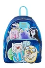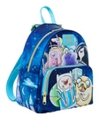 This Loungefly Adventure Time Characters Group Shot backpack is perfect for any fan of the popular cartoon. The dark blue faux leather exterior is accented with a zipper and brass hardware. The shoulder strap is adjustable and the backpack has a zip closure. The mini size makes it ideal for travel or casual use. The polyester lining and faux leather handle/strap material provide durability. The backpack features pockets and an adjustable strap drop. The Loungefly Adventure Time product line ensures quality and the backpack is a great addition to any collection.