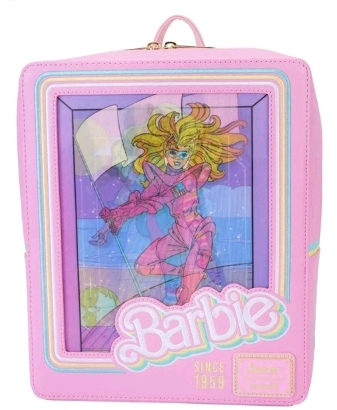 The Loungefly Barbie 65th Anniversary Doll Box Triple Lenticular Mini-Backpack is a stylish and feminine accessory perfect for any Barbie enthusiast. This mini-backpack features a triple lenticular pattern on the exterior, with a pink faux leather material and gold hardware accents. The adjustable shoulder strap and zip closure make it convenient for travel, parties, or casual wear. The backpack is also lined with fabric in a matching pink color, adding a touch of luxury to the design. Show off your love for Barbie in a fashionable way with this chic and playful accessory from Loungefly. Smoke and pet free home. Thanks for your interest.