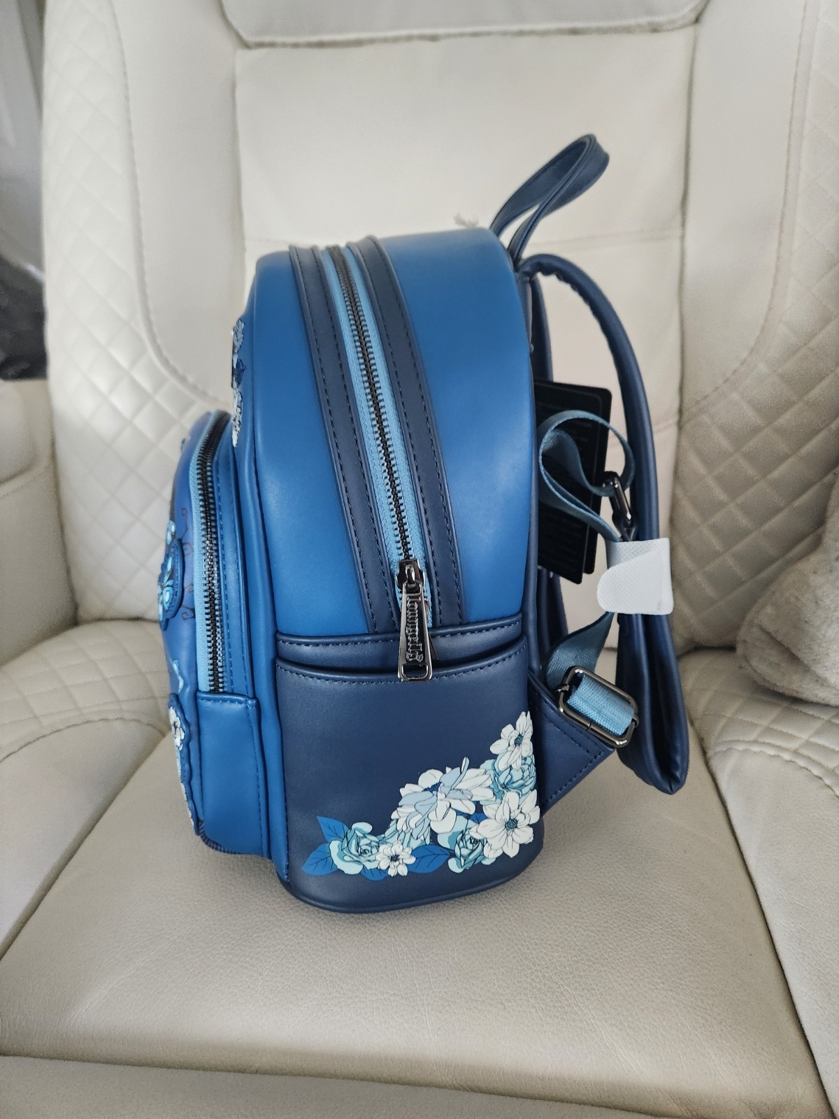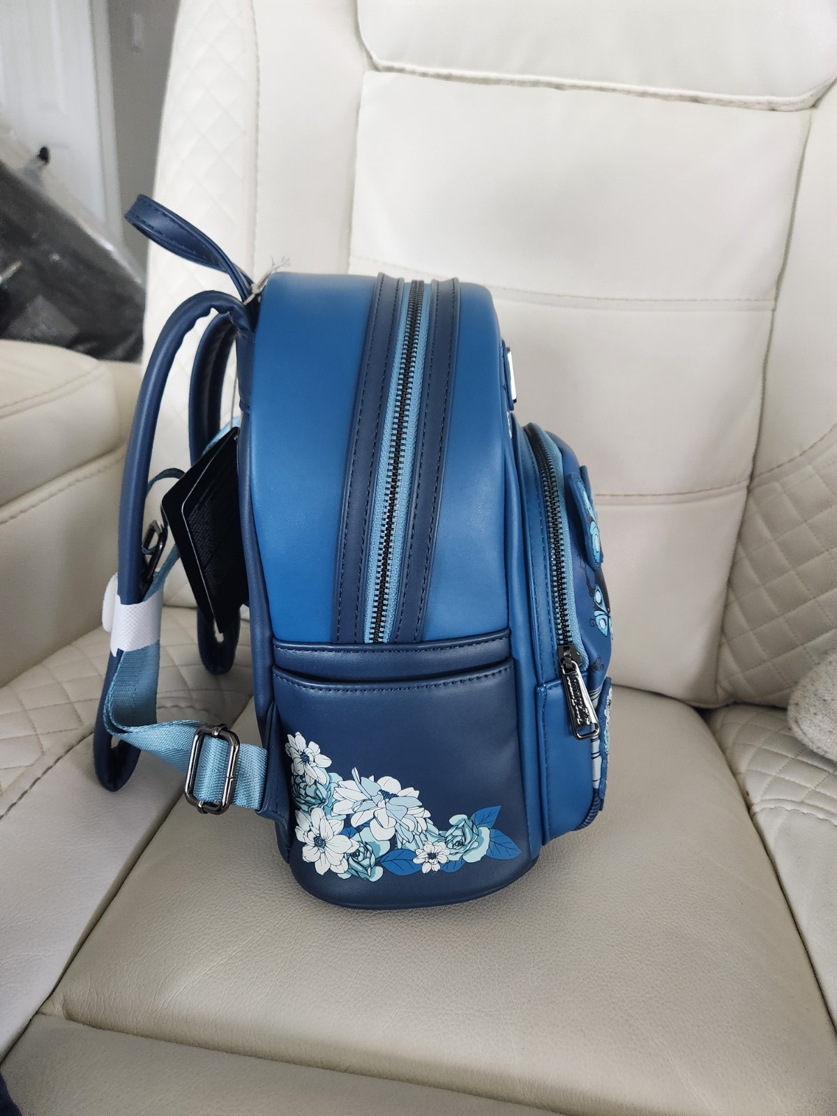 Backpack: With this Corpse Bride backpack, we've never felt more alive! Emily poses amid applique butterflies and embroidered flowers, guarding front and side pockets. Polyurethane Approx. 10 1/2" H x 7 1/2" W x 6" D