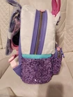 Cardholder: Let your accessories bloom with the sassy Daisy Duck! This plush cardholder features her face and a 3D sequined bow up top. Comes with 4 card slots and clear ID slot on the back. 5" x 3" Polyurethane 4 card slots Zipper pocket Backpack: Pack up for a Disney Parks day with this mini backpack! Shaped like Daisy Duck, this bag includes a plush top with applique facial details and sequins on the bottom. With a rubber flower zipper pull and adjustable straps, this backpack is perfect for fans of the Disney diva. Polyurethane; sequin; plush Approx. 10 1/2" H x 9" W x 4 1/2" D