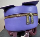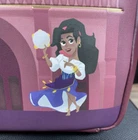 New with tags. Small blemish. See pictures for details. Add this stunning Loungefly mini backpack to your Disney collection! This design features the iconic Notre Dame cathedral from The Hunchback of Notre Dame, with detailed appliqué artwork of Quasimodo, Esmeralda, Clopin, and the gargoyles. The interior is just as magical, featuring a stained glass-style lining with character art. Details: • Brand: Loungefly • Franchise: Disney • Movie: The Hunchback of Notre Dame • Style: Mini backpack • Color: Purple, maroon, multicolor accents • Size: Approx. 11”H x 8” W x 4” D • Material: Faux leather • Interior lining: Custom stained glass print • Features: Gold-tone hardware, side pockets, front zip pocket, adjustable straps • Condition: New with tags (NWT) Perfect for collectors, Disney fans, or as a park day bag! Ships fast from a smoke-free home! Please feel free to reach out with any questions.
