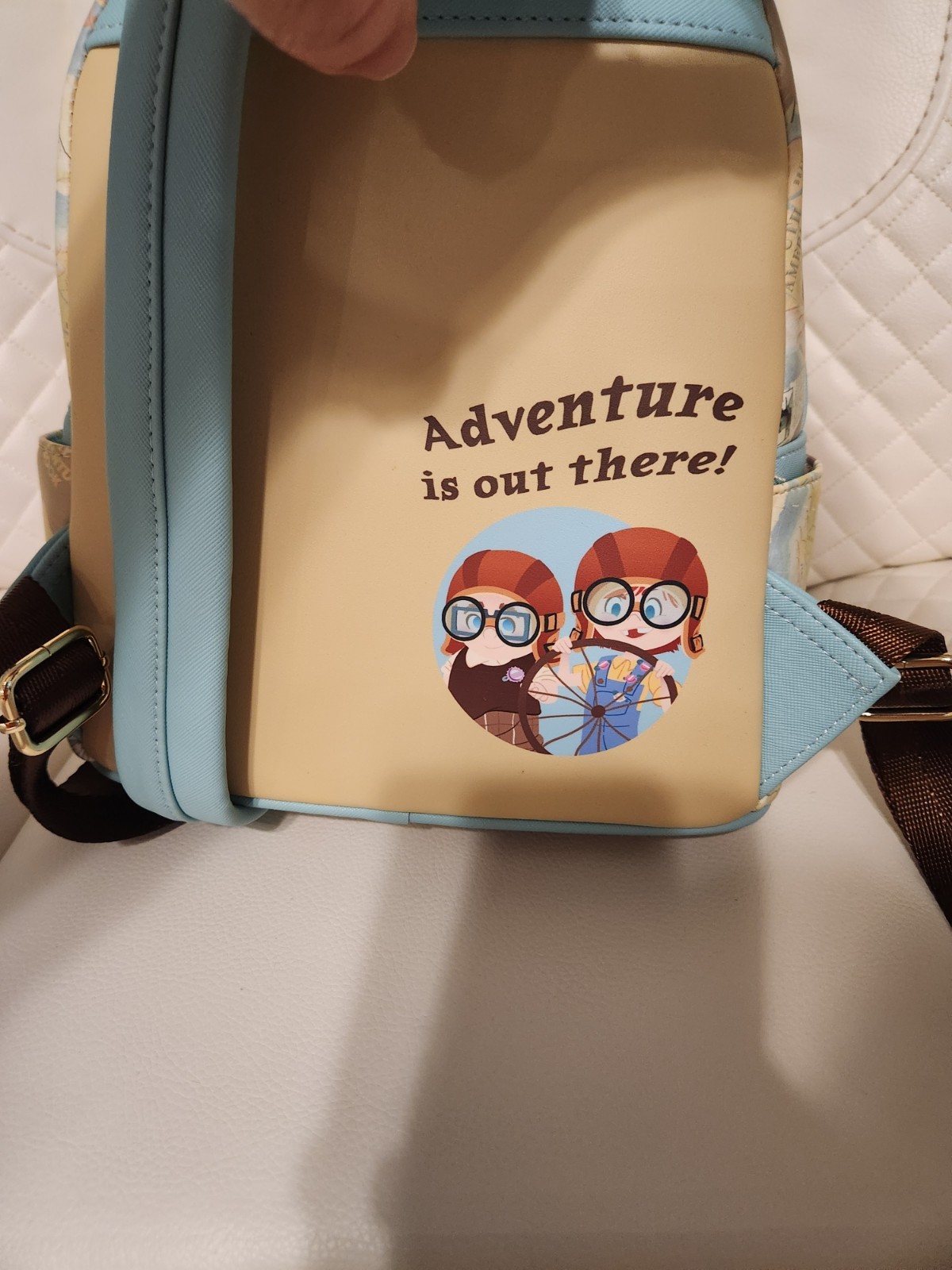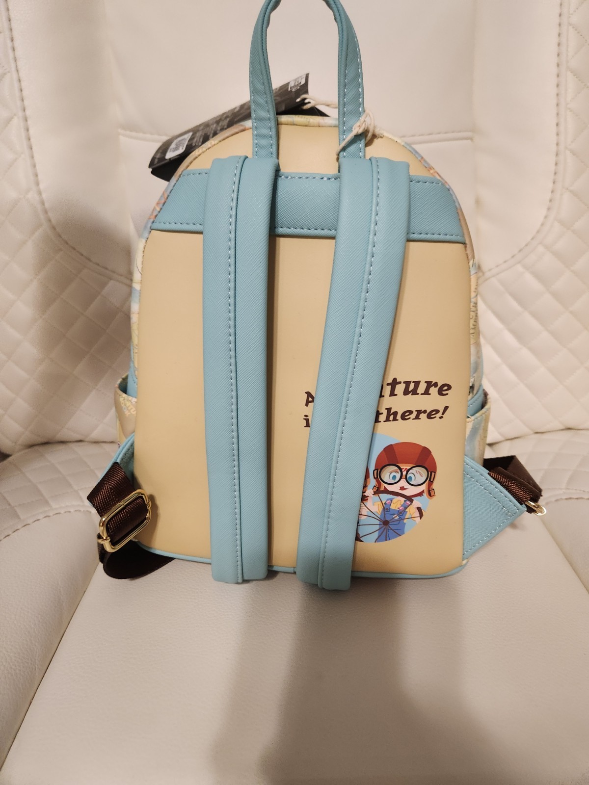 Cardholder: Keep your adventuring essentials safe with this Up-inspired cardholder! Featuring an allover print of maps and grape soda pins, the front of this cardholder includes a snap closure with an applique of young Carl and Ellie. With four card slots and a clear ID sleeve, this accessory is perfect for your next trip to the Disney Parks and beyond. Polyurethane Approx. 3" W x 5" H Backpack: Get ready for your next adventure with this Up-inspired mini backpack! Featuring appliques of a young Carl and Ellie with debossed details, the body of this bag includes an allover print of maps and grape soda pins. "Adventure is Out There!" is written on the back of the bag. Polyurethane Approx. 9 1/4" W x 10 1/2" H x 5" D