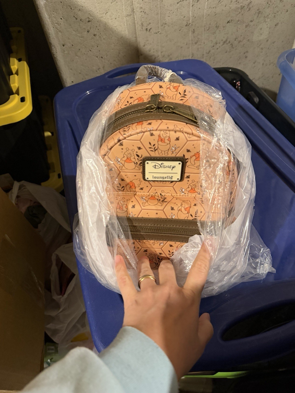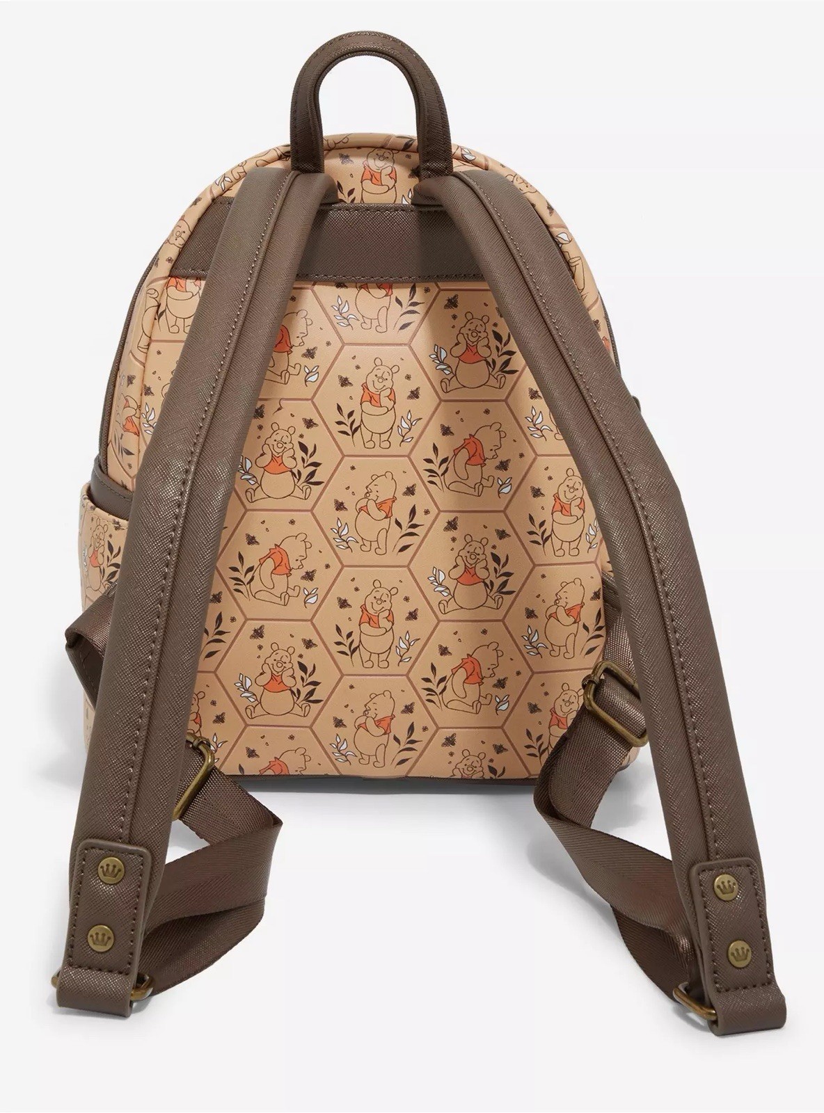 Loungefly Disney Winnie the Pooh Honeycomb Portraits Mini Backpack - BoxLunch Exclusive Get ready for a walk through the Hundred Acre Wood with this Winnie the Pooh-inspired mini backpack! Featuring an allover embossed design of honeycombs with different portraits of Pooh Bear in each one, this bag includes an interior lining of Pooh Bear, Piglet, Tigger, and Eeyore among flowers. With a zippered front pocket, side pockets, and adjustable straps, this backpack is perfect for all of your adventures. A BoxLunch Exclusive! Polyurethane; polyester lining Approx. 9" W x 10 1/2" H x 5" D Imported