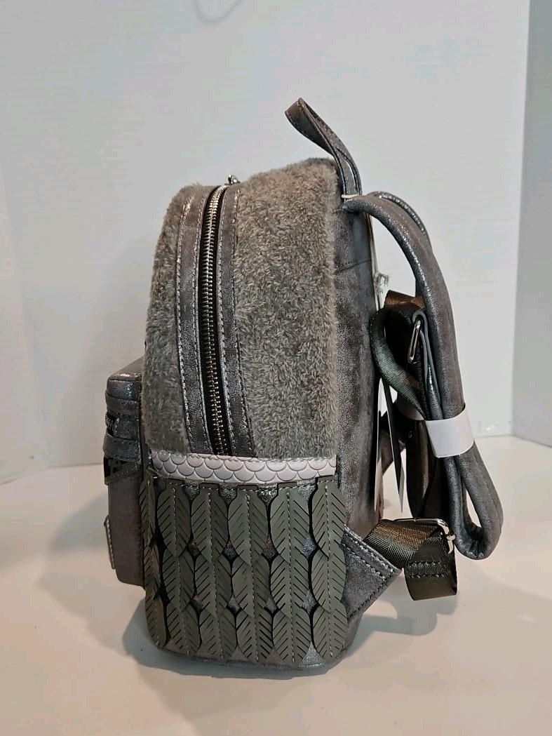 The Loungefly HBO Game of Thrones SANSA Silver Mini Backpack is a stylish and versatile accessory for women. Made of faux fur and leather with silver hardware, this mini backpack features a zip closure and a shoulder strap handle in gray. It is perfect for travel, parties, or casual outings, showcasing a theme inspired by the popular HBO Game of Thrones series. The silver exterior color and gray lining create a sophisticated and chic look, making it a must-have piece for fans of the show. Smoke and pet free home. Thanks for your interest.