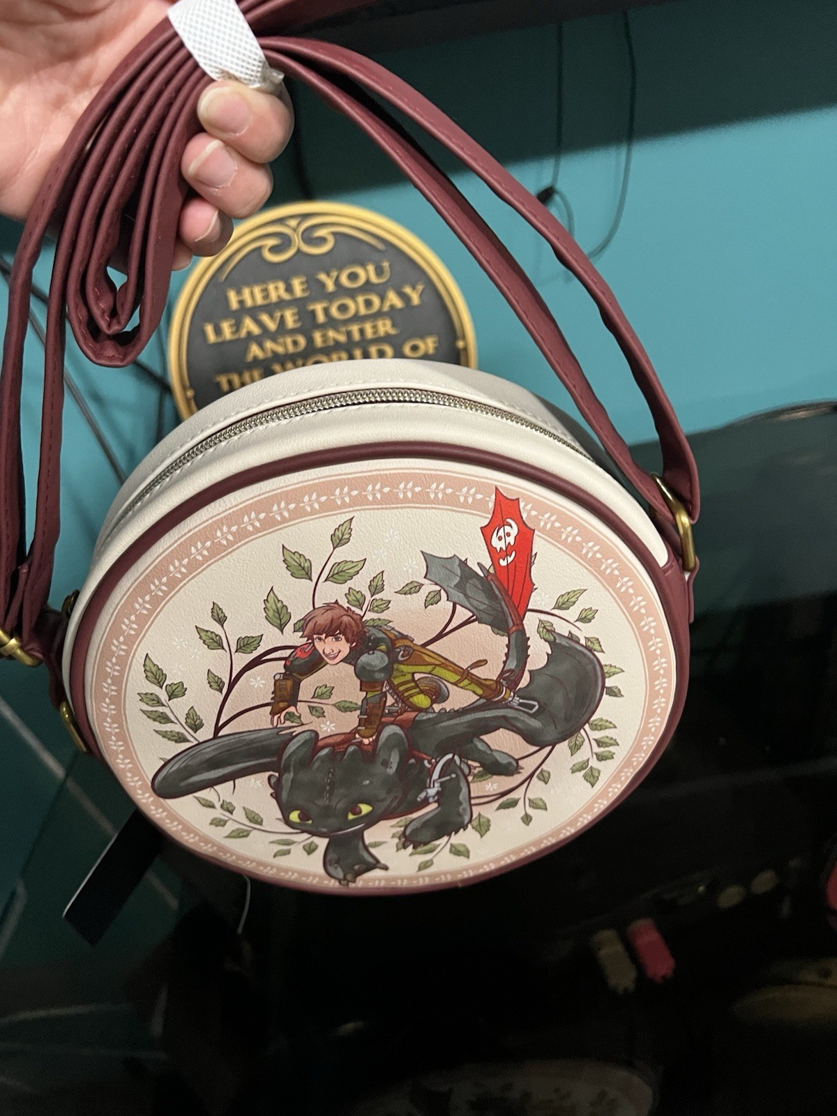 This Loungefly crossbody bag is a must-have for How to Train Your Dragon fans! The vibrant Toothless and Hiccup design pops against the dark burgundy strap, and the adjustable length makes it super versatile. The quality feels great—durable yet lightweight—and the zip closure keeps everything secure. Perfect for adding a playful touch to any outfit, whether you're heading to a convention or just running errands. Love the bronze hardware details and how spacious it is for a medium-sized bag. Definitely a fun and functional accessory!