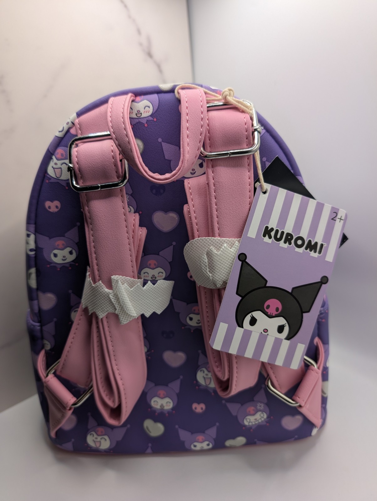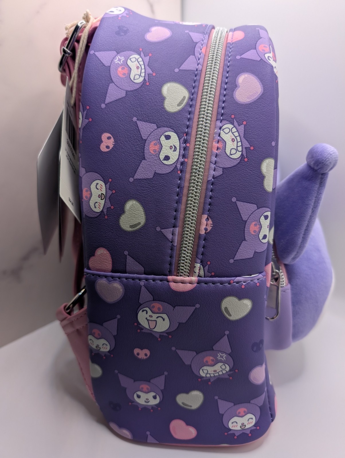 Loungefly Kuromi Hearts Plush Face Mini Backpack and Wallet - brand new with tags Pack all of your essentials into this devilishly cute mini backpack! Inspired by the mischievous Kuromi, this backpack features an allover print of her face and hearts. Comes with a plush design of her face on the front zipper pocket. Complete with adjustable straps and an interior drop pocket. Backpack: 8'' x 4 1/2'' x 10 1/2'' Polyurethane Adjustable straps Interior drop pocket Imported By Loungefly Wallet: 5'' x 4'' Polyurethane 5 card slots Clear ID display Imported By Loungefly We are a smoke-free, pet friendly home. All bags are kept in a temperature controlled room inside a silk storage bag (included with your order). I will ship out quickly and package your item with care. I only ship using boxes and carefully pack each bag with plastic wrap and packing material. Thanks for stopping by! Have questions, please ask! Have a great day!