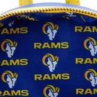 The Loungefly NFL Los Angeles Rams Patches Mini Backpack & Wallet Set features a multicolor design with patches representing the Los Angeles Rams football team. The mini backpack and matching wallet are made of faux leather, showcasing the Loungefly brand's attention to detail and quality. This stylish set is perfect for women who are fans of the Los Angeles Rams and want a fashionable way to show their team spirit. The compact size of the backpack makes it ideal for carrying essentials while on the go.