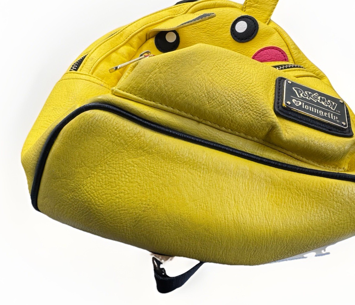 Up for sale is this adorable Loungefly x Pokemon Pikachu mini backpack in excellent pre-owned condition! This officially licensed collectible features: Features: • Bright yellow faux leather construction • Iconic Pikachu face design with embroidered features • Pink cheek details and black-tipped ears • Metal Loungefly and Pokemon branded hardware • High-quality metal zippers with Loungefly branded pulls • Black interior lining with yellow Pikachu silhouette pattern • Adjustable black straps • Multiple compartments including front zip pocket • Compact mini backpack size perfect for everyday use or conventions