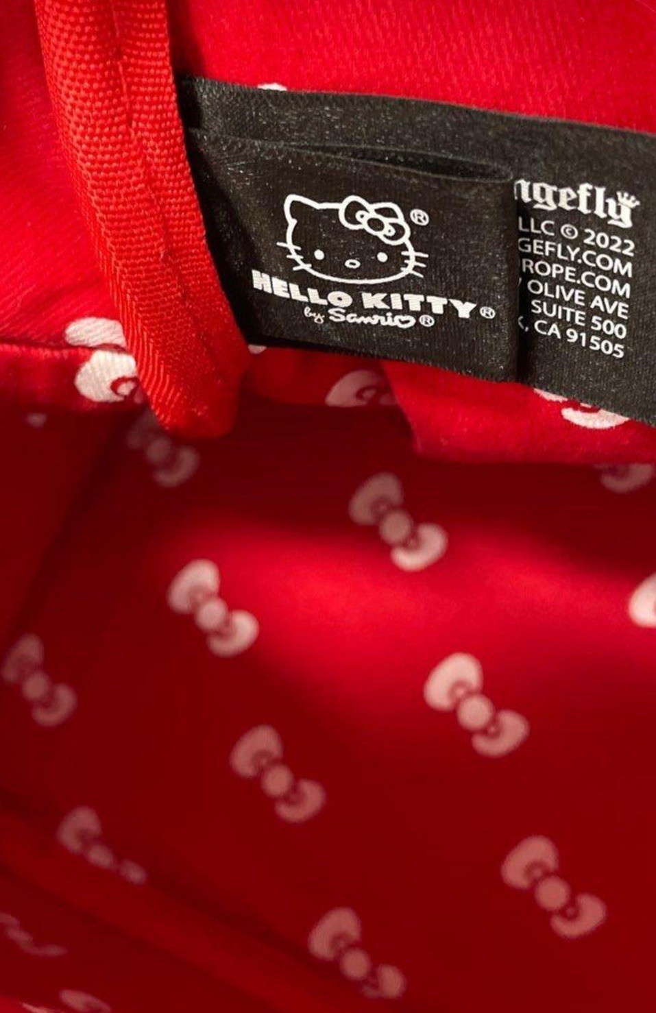 Celebrate the 50th anniversary of Sanrio's Hello Kitty with this stylish Loungefly mini backpack. The semi-circle shape is adorned with Hello Kitty sequins, perfect for any anime or cartoon fan. The multicolor exterior with gold accents and red shoulder strap adds a fun and vibrant touch to any outfit. This cute and compact backpack is great for travel or casual occasions, making it a must-have accessory for Hello Kitty lovers.