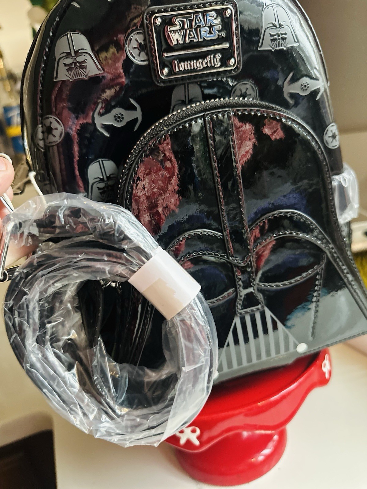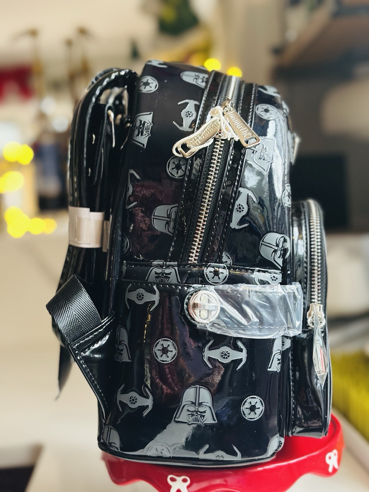 Unleash the power of the dark side with the Star Wars Darth Vader Backpack and Fanny pack. This set combines style and functionality, featuring iconic Darth Vader designs that any Star Wars enthusiast will love. Perfect for everyday use, or displaying your fandom, our backpack and fanny pack ensure you're always ready for adventure. Features: Vegan leather (polyurethane) Adjustable shoulder straps Front zipper pocket Side drop pockets Shiny silver hardware Embossed, glow-in-the-dark Zipper Pull Coordinating inside lining Backpack dimensions: 9”W x 10.5”H x 4.5”D Fanny dimensions: 7"W x 6.5"H x 1"D This backpack is an officially licensed STAR WARS™ product.