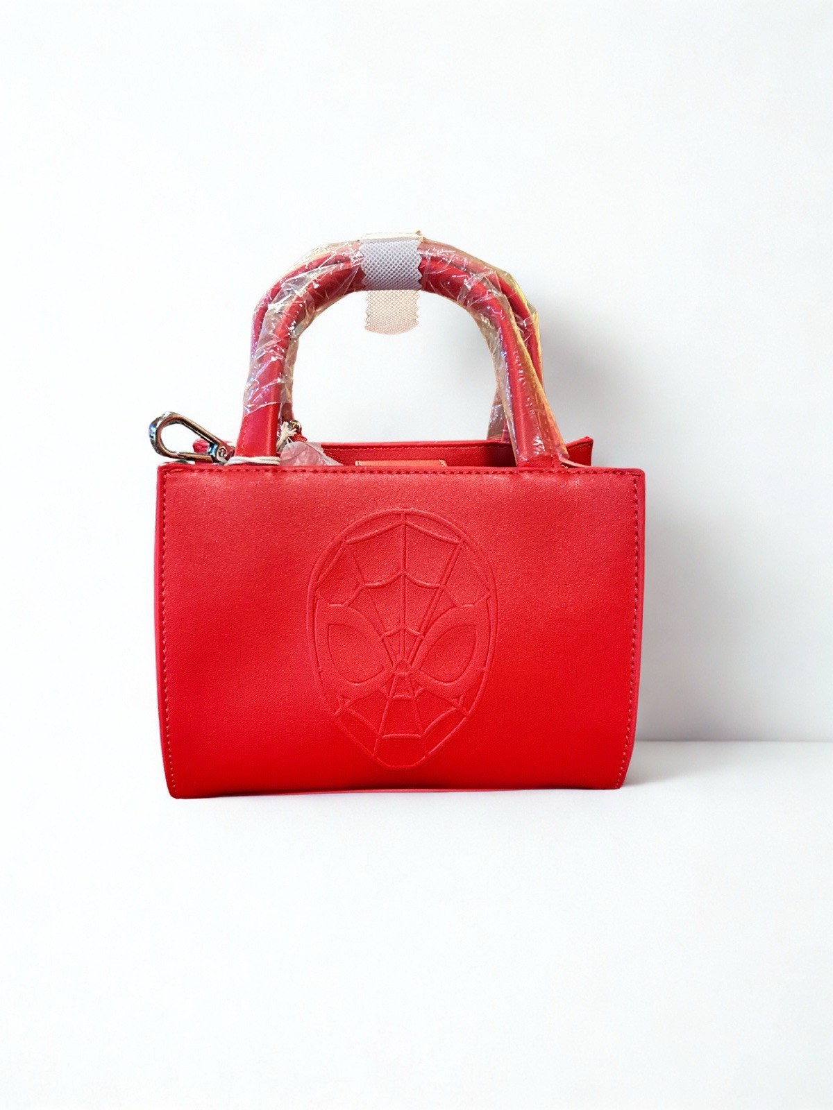 The Loungefly x Marvel Spider-Man Handbag Crossbody Purse in red is a stylish accessory perfect for Spider-Man fans. Made from faux leather, this medium-sized purse features a solid red exterior with a snap closure and adjustable red faux leather straps. The squarr shape and Spider-Man character detail make it a fun and functional choice for women on the go. The adjustable strap offers added convenience and comfort for everyday use.