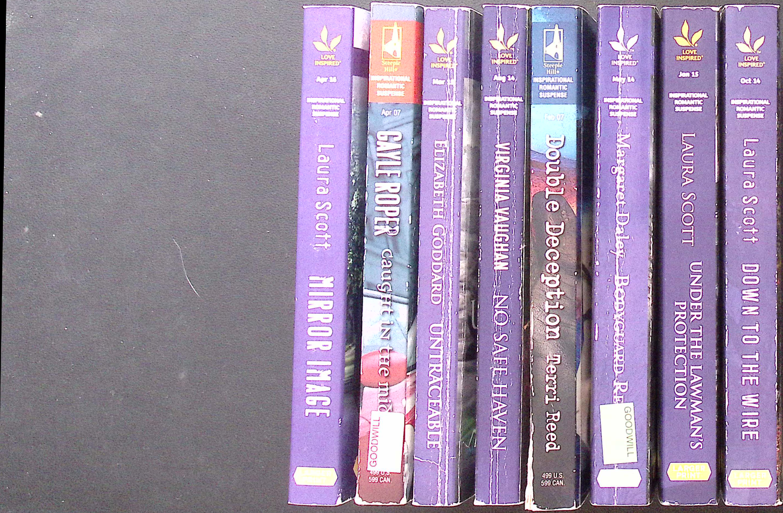Mirror Image - Laura Scott Caught in the Middle - Gayle Roper Untraceable - Elizabeth Goddard No-Safe Haven - Virginia Vaughan Double Deception - Terri Reed Bodyguard Reunion - Margaret Daley Under the Lawman's Protection - Laura Scott Down to the Wire - Laura Scott Priced to sell Open to offers