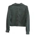 Sage green corduroy shirt jacket, a versatile and stylish addition to any wardrobe. This cropped jacket features a classic button-front design, complete with functional chest pockets for added utility and flair. The soft corduroy fabric offers a comfortable and textured feel, making it perfect for layering or wearing on its own. The neutral sage green color ensures it pairs effortlessly with a variety of outfits. This jacket is ideal for casual outings, weekend adventures, or adding a touch of relaxed sophistication to your everyday look. Keywords: corduroy jacket, cropped jacket, shirt jacket, shacket, sage green, button front, pockets, casual, womens jacket, Love Tree, long sleeve, fall fashion, spring fashion, lightweight jacket