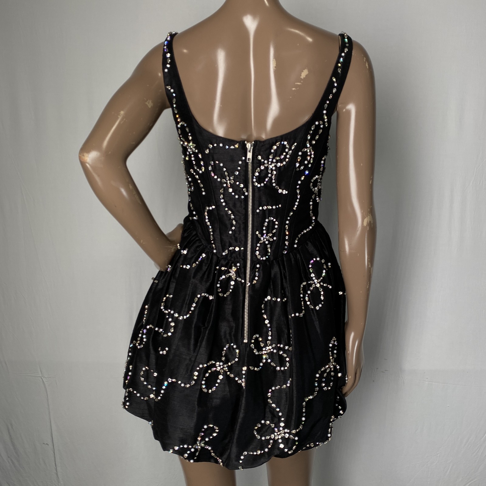 Rumer the Label NWT Freya Mini Linen Puff Sleeve Cutout Dress Black Sz S $269
