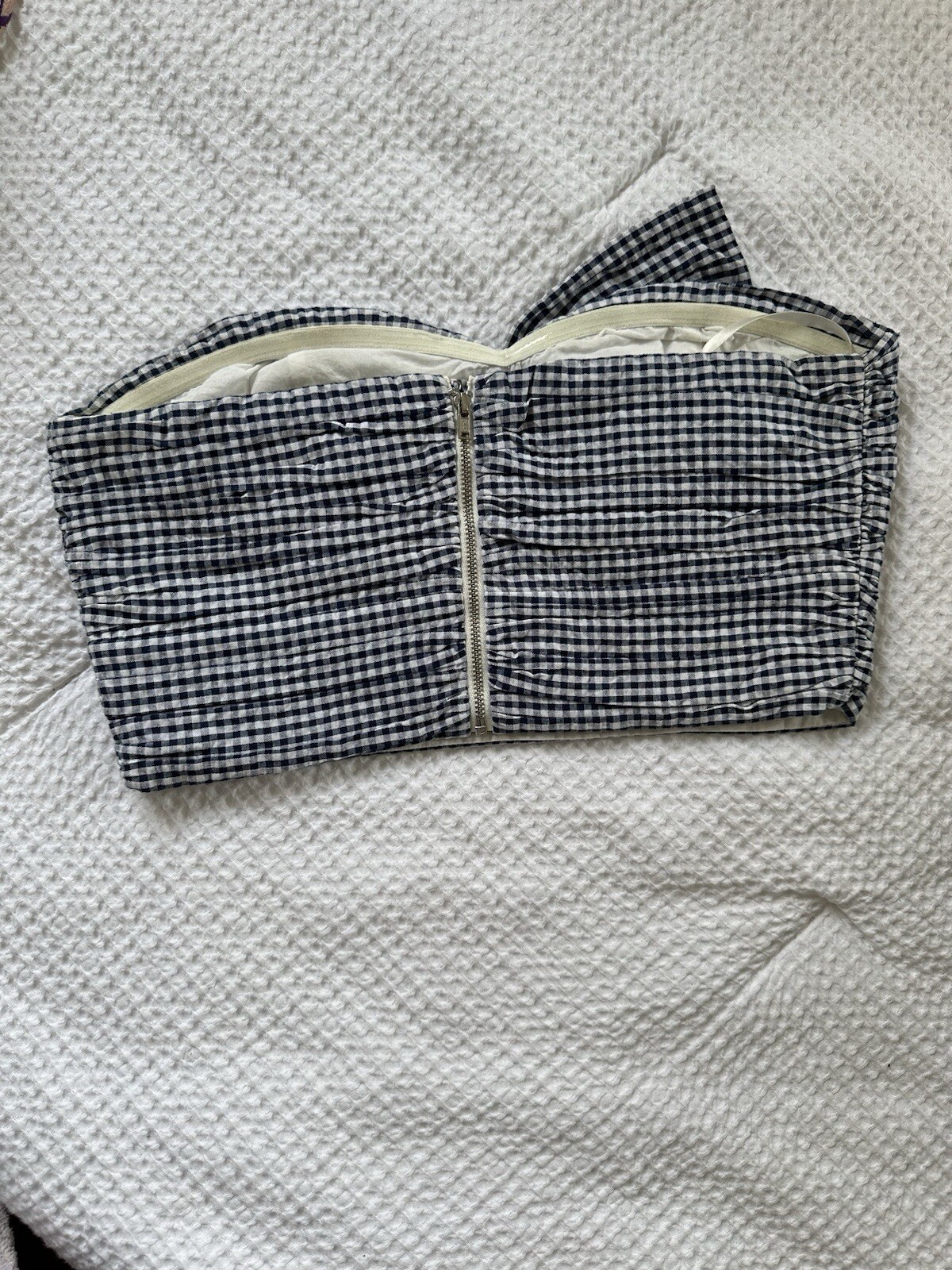 The Lovers + Friends Twist Turn Top in Mini Gingham is a stylish blouse for women, featuring a sleeveless design and a cropped style in a blue checkered pattern. Made from a comfortable cotton blend material, this top is a size Medium and ideal for adding a trendy touch to any outfit. The twist turn detail adds a unique element to the top, making it a chic choice for various occasions.