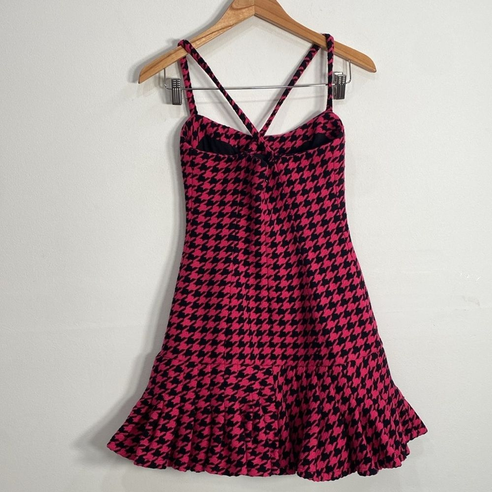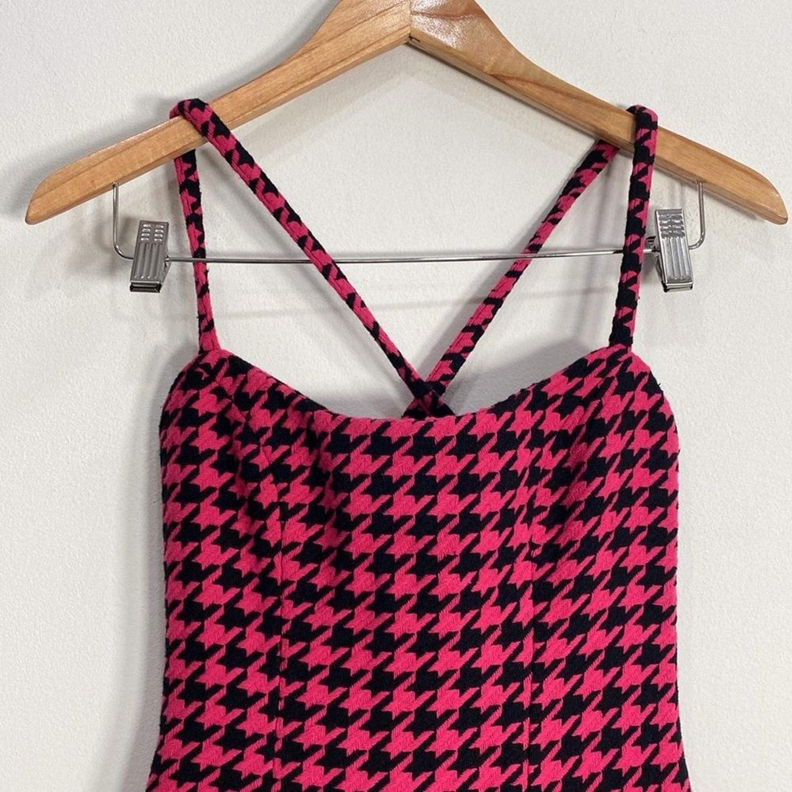 This dress is absolutely stunning! The houndstooth print gives it such a chic, academic vibe while still feeling fun and flirty. The fit is perfect—hugs in all the right places without being too tight. The material is comfortable yet structured, making it ideal for a night out or a fancy event. I love the mini length and how versatile it is—dress it up with heels or keep it casual with boots. Definitely a must-have in any wardrobe!