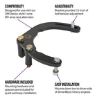 Mounts to driver side of engine, Will not interfere with existing belt drive systems in most cases, Designed for use with alternators 289-1004 and 916-67999, Black powder-coated steel, Includes bracket and mounting hardware, alternator sold separately Low Mount Alternator Bracket for Mini Race Alternator, SBC Sku # 91667997 Mfr. Part # 91667997 Condition New Brand Speedway Motors Sold Set Details Info Mounts down low to driver side of small block Chevy engines Will not interfere with existing belt drive systems in most cases Designed for use with our GM Denso-style 1-wire 90-amp race alternator Black powder-coated steel for strength and reduced flex Bracket provides 1.5-inch of belt tension adjustment Suggested V-belt usage of 3/8 width and 40-inch length, such as Gates 7400 Mounting hardware and spacers are included for quick and easy installation Manufactured in house at Speedway Motors in Lincoln, NE Alternator shown for illustration and is not included, available Power Your Race Car’s Electronics with Ease You can’t win the race if your ignition or other electronics are not fed a continuous diet of steady amperage and the best way to do that is with a high-quality racing alternator. We’ve solved the dilemma of where to mount your race car’s alternator with this CNC-cut heavy-duty powder coated steel bracket that locates our popular down low on the driver’s side of your small block Chevy. This location keeps the alternator out of the way of your dry sump or other belt driven accessories. Complete Your Charging System Setup with Matching Pulley and Belt Drive To finish your alternator upgrade we suggest our , and a 40" effective length v-belt, such as the . If needing the complete setup, we offer a complete , which has all these parts bundled together for your shopping convenience. Specs Material Type Steel Sold in Quantity Each Belt Type V-Belt Color Black Mounting Side Driver Side Water Pump Style Short Thread Pitch 3/8"-16 Hardware Included Yes Centerline of Holes 1.625 Slot Length 1.50 Belt Width .375 Finish Powder Coat MFG. Part # 916-67997 Centerline of Holes (Alternate) 4.93 Bracket Style Low Mount Belt Length 40 Related Items / Suggested Parts GM Denso Style 1-Wire Mini Race Alternator, 90 Amp Tech Support We're here to help before and after your purchase. If you have a question or need assistance with one of our products, please contact us through eBay Messaging and a knowledgeable Speedway Motors team member will be happy to help. About Speedway Motors is America’s Oldest Speed Shop® and has been a trusted source for specialty rodding and racing products and friendly expert advice for more than 72 years. Founded in 1952 by “Speedy” Bill Smith – a racer and street rodder himself – Speedway has grown from a one-man operation to become the world’s largest manufacturer, distributor and retailer of street rod and racing products. Our industry-leading fast delivery is the result of same-day shipping from our state-of-the-art, centrally located 500,000 sq. ft. headquarters. Speedway’s size offers customers unmatched product selection and low pricing, while our excellent technical support and customer service have made us a recognized leader in the rodding and racing industries.