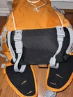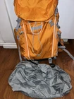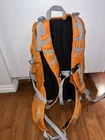 In good condition. No rips or tears. Great backpack has a space in the back for a hydration bladder.