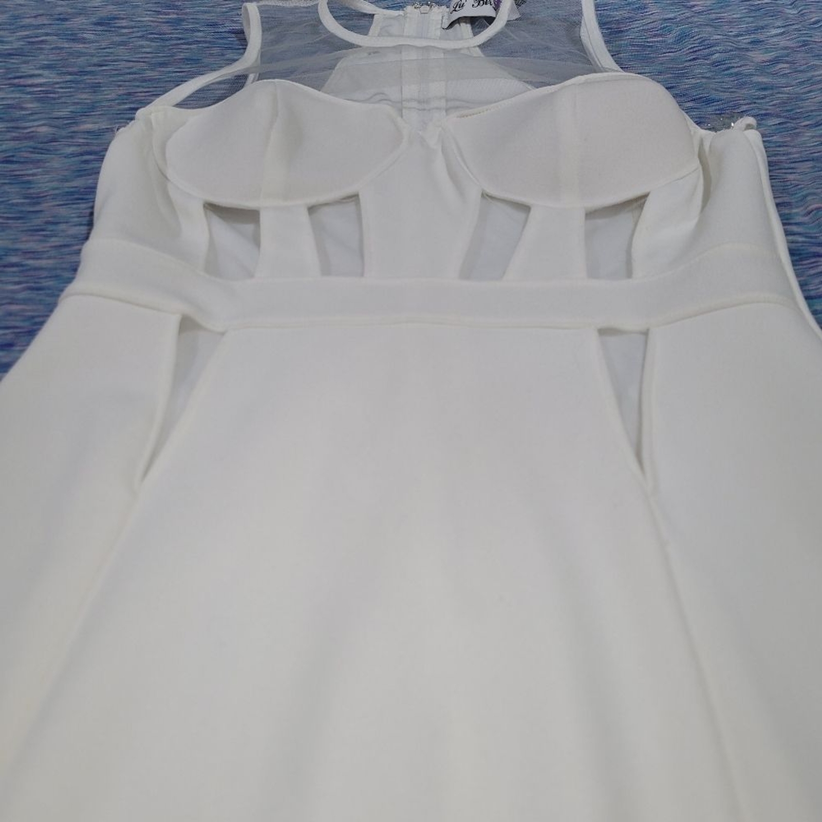 Lu'Bella womens small white sleeveless bodycon dress with mesh cutouts