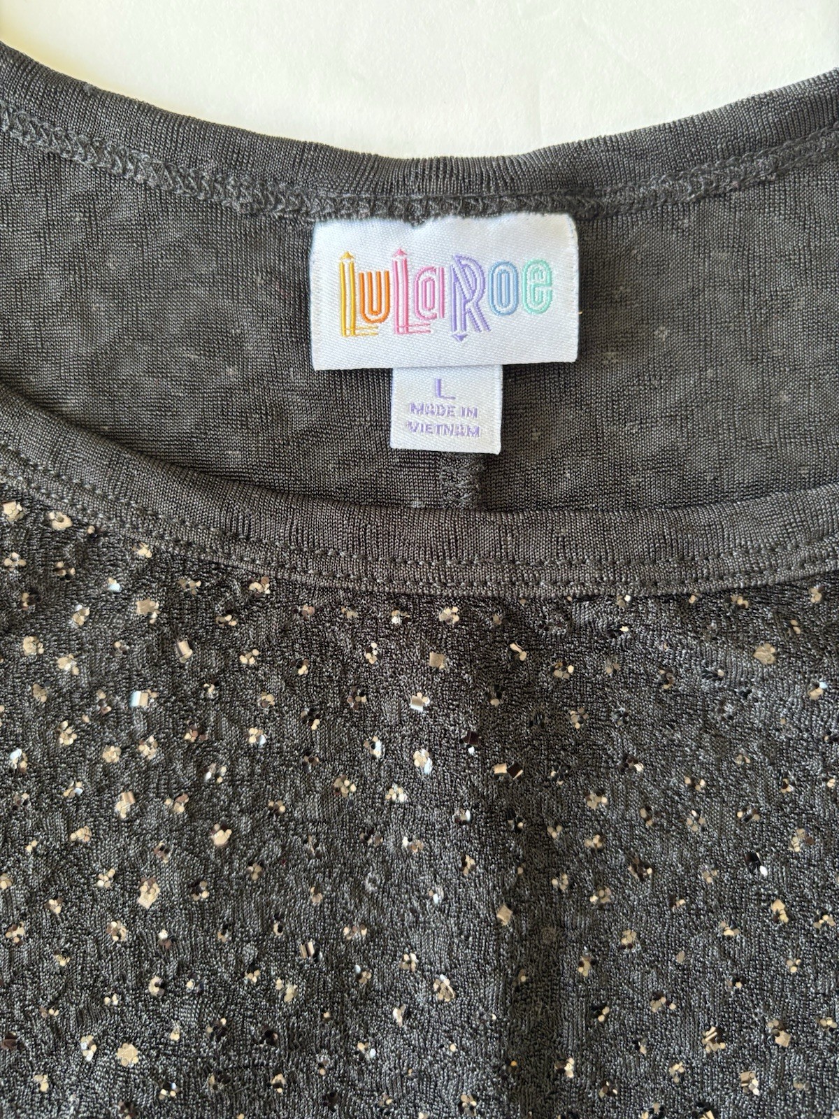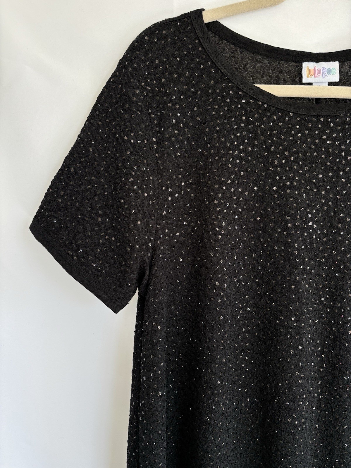 LuLaRoe Hi Low Carly Dress BLACK Sparkly Simmer Glitter Short Sleeve-LARGE Preowned excellent condition SHIPS OUT WITHIN 24hrs!! Comes from a smoke free home.