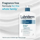 Product Description Lubriderm Daily Moisture, Hydrating Body Lotion, for Normal to Dry Skin, with Pro-VitaminB5, 6 Fl Oz (Pack Of 1) Lubriderm Daily Moisture Lotion is a solution to replenish and moisturize dry skin. From a dermatologist developed brand, this daily hydrating lotion is clinically shown to help moisturize dry skin for 24 hours and helps achieve healthy-looking skin. The lotion is enriched with Pro-Vitamin B5 and essential moisturizers naturally found in healthy skin to improve skin's moisture barrier. Great for smoothing over hands and body every day, Lubriderm Daily Moisture Lotion is non-greasy for a clean, pleasant feel on the skin. Bottle of Lubriderm Daily Moisture Hydrating Hand and Body Lotion for dry skin Helps replenish, moisturize, and hydrate dry skin for healthy-looking skin Lotion is clinically shown to hydrate and moisturize dry skin for 24 hours Enriched with Pro-Vitamin B5 and skin-essential moisturizers naturally found in healthy skin Daily lotion for normal-to-dry skin helps improve skin's moisture barrier for healthy-looking skin Daily Moisture Hydrating Lotion is great for smoothing over dry hands and body every day Daily Moisturizing lotion is non-greasy for a clean, pleasant feel on the skin From Lubriderm, a dermatologist developed brand Enriched with vitamin B5 and skin-essential moisturizers naturally found in healthy skin to improve skin's moisture barrier Great for smoothing over hands and body every day and is designed for normal-to-dry skin types. Helps replenish and moisturize dry skin Moisturizing lotion is non-greasy for a clean, pleasant feel on the skin. From Lubriderm, a dermatologist-developed brand Ingredients Water, mineral oil, glycerin, caprylic/capric triglyceride, stearic acid, cetyl alcohol, phenoxyethanol, cetearyl alcohol, dimethicone, carbomer, ceteareth-20, sodium hydroxide, sodium citrate, methylparaben, propylparaben, fragrance, citric acid, ethylparaben, panthenol